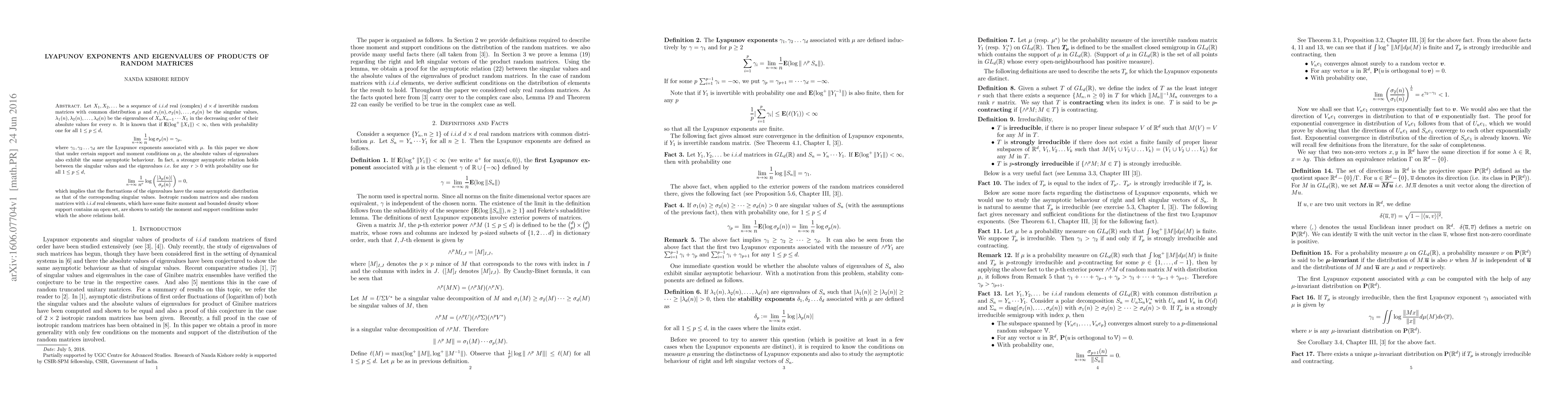 Research shows that eigenvalues of products of random matrices exhibit asymptotic behavior similar to their corresponding singular values, with fluctuations having the same distribution.