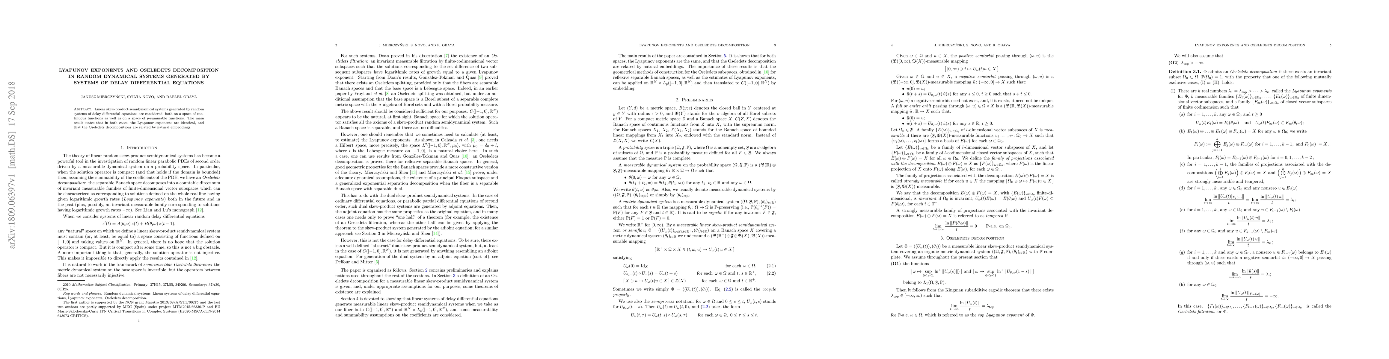 This paper investigates Lyapunov exponents and Oseledets decompositions in random dynamical systems driven by delay differential equations. The study reveals that Lyapunov exponents are consistent across continuous and $p$-summable function spaces, and the Oseledets decompositions are linked through natural embeddings.