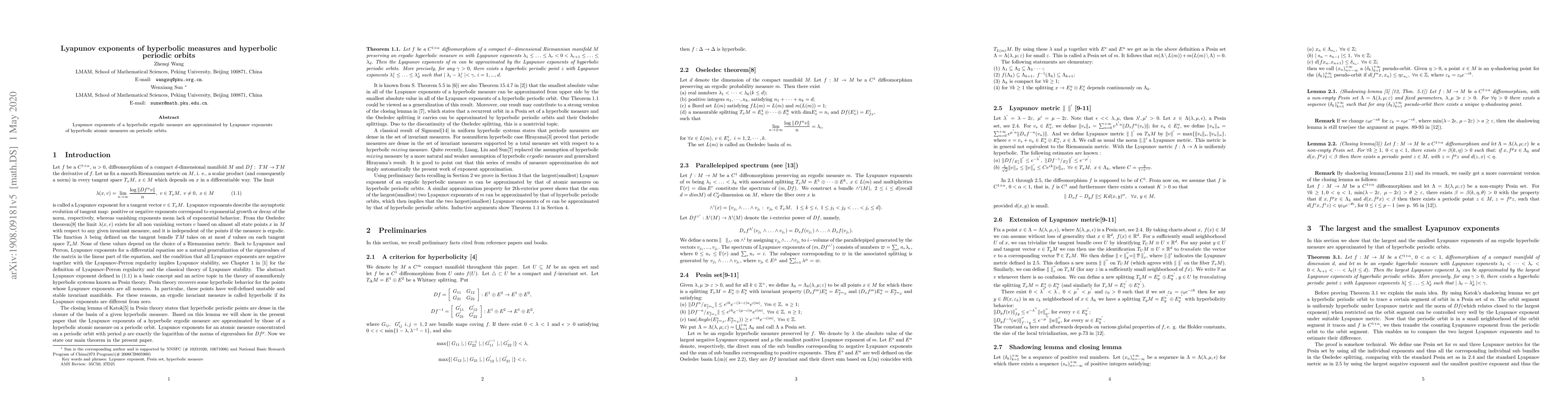 Lyapunov exponents of a hyperbolic ergodic measure are approximated by Lyapunov exponents of hyperbolic atomic measures on periodic orbits.