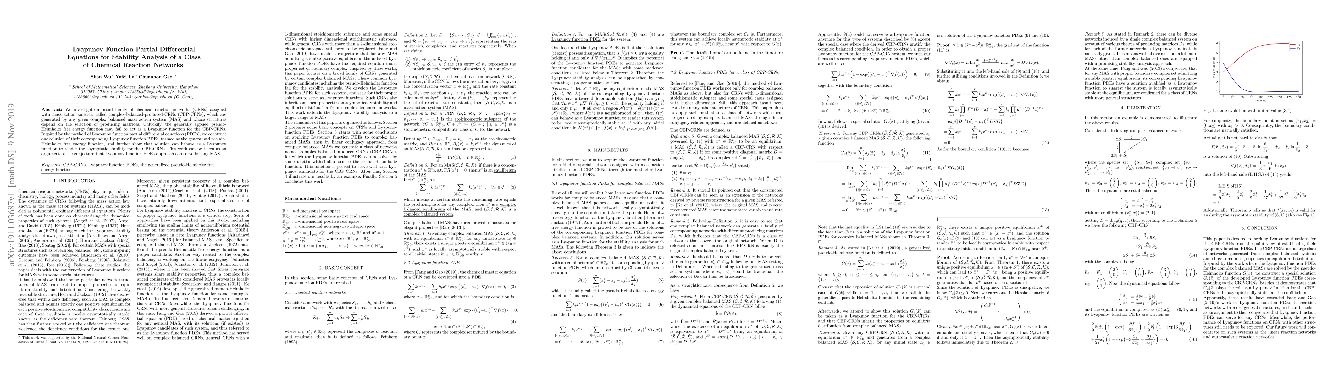 We investigate a broad family of chemical reaction networks (CRNs) assigned with mass action kinetics, called complex-balanced-produced-CRNs (CBP-CRNs), which are generated by any given complex balanced mass action system (MAS) and whose structures depend on the selection of producing matrices. Unluckily, the generally applied pseudoHelmholtz free energy function may fail to act as a Lyapunov function for the CBP-CRNs. Inspired by the method of Lyapunov function partial differential equations (PDEs), we construct one solution of their corresponding Lyapunov function PDEs, termed as the generalized pseudoHelmholtz free energy function, and further show that solution can behave as a Lyapunov function to render the asymptotic stability for the CBP-CRNs. This work can be taken as an argument of the conjecture that Lyapunov function PDEs approach can serve for any MAS.