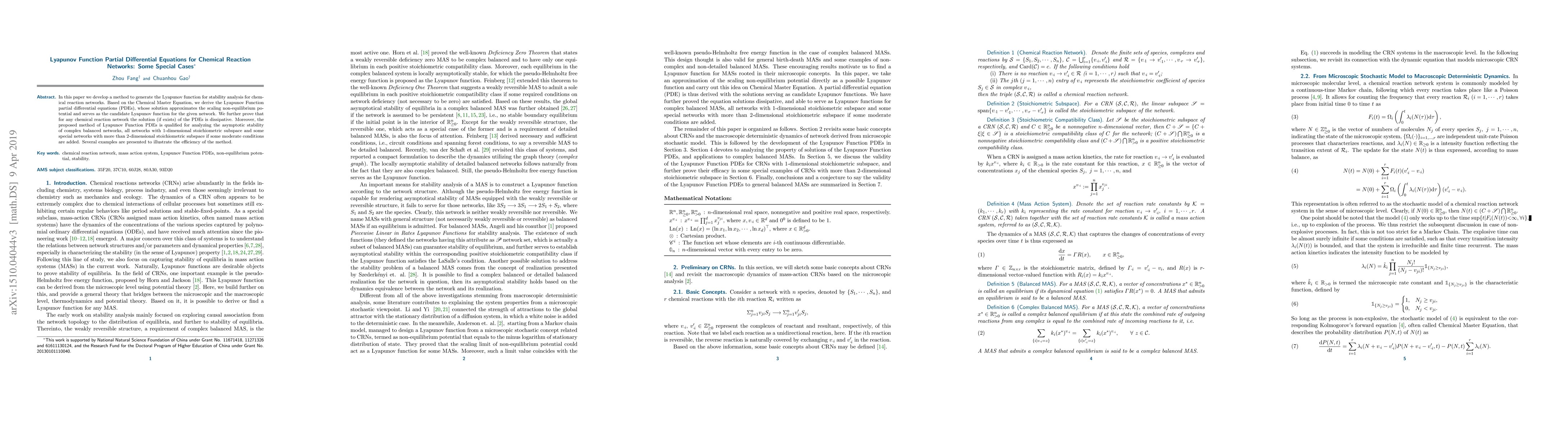 This work introduces a novel approach to analyzing the stability of complex biochemical systems using Lyapunov functions, which differs from existing methods in its use of stochastic analysis and systematic calculation of Lyapunov functions