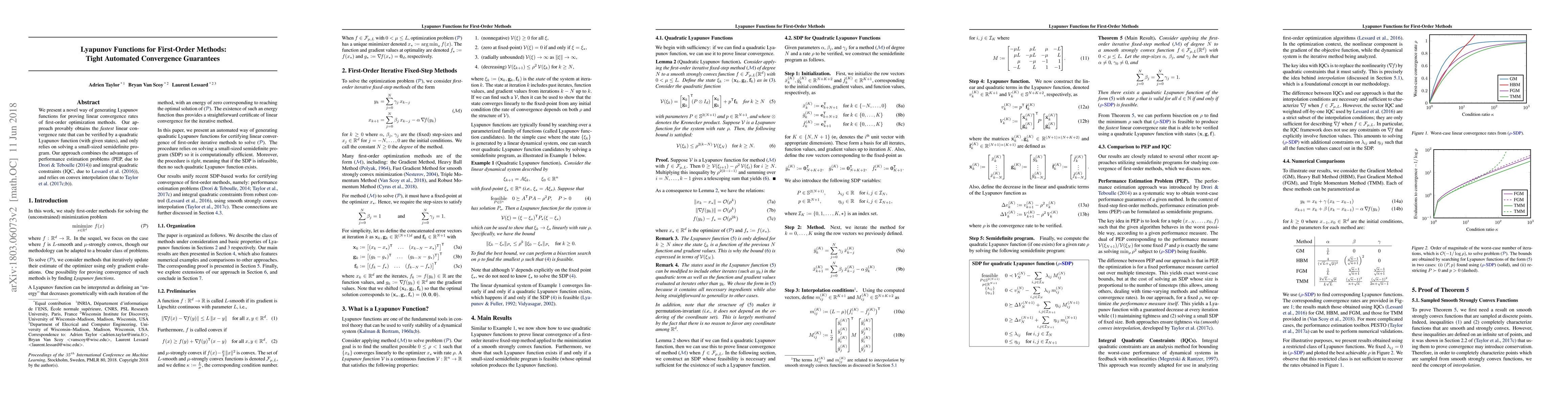 This paper introduces a method for generating Lyapunov functions to ensure the fastest linear convergence rate for first-order optimization methods, relying on solving a small-sized semidefinite program. It merges performance estimation problems and integral quadratic constraints using convex interpolation.