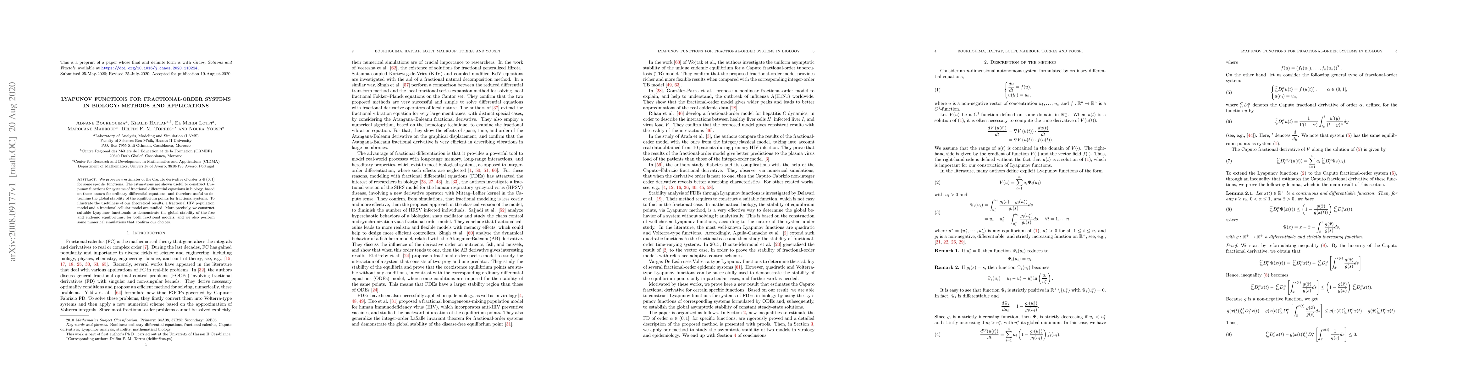The development of a novel approach to constructing Lyapunov functions for fractional-order systems, which can be applied to a wide range of biological systems