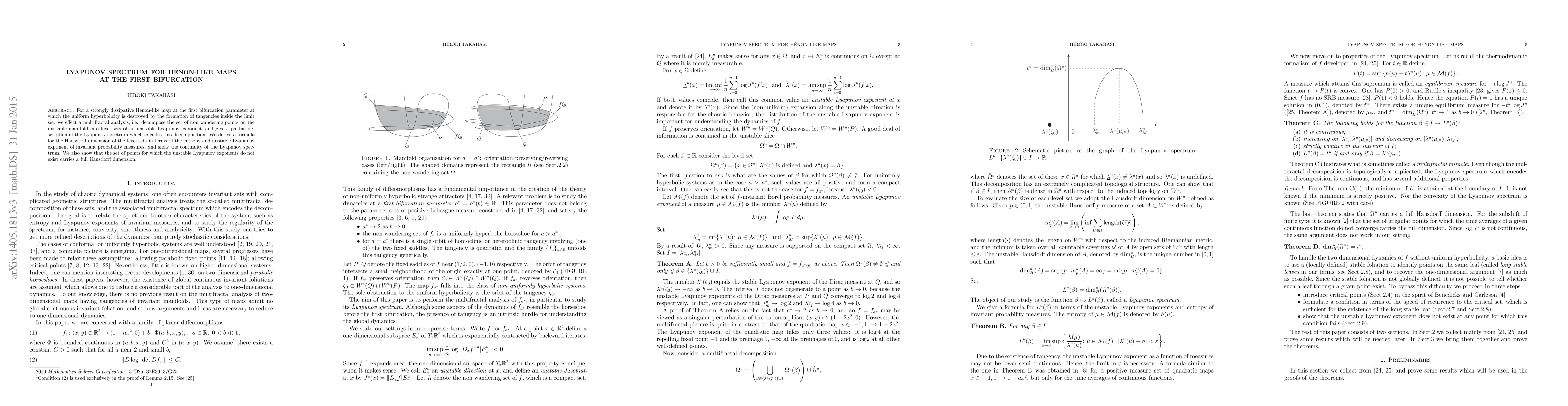 This paper conducts a multifractal analysis of a strongly dissipative H\'enon-like map at the bifurcation point where uniform hyperbolicity breaks down, decomposing the set of non-wandering points into level sets of an unstable Lyapunov exponent. It provides a formula for the Hausdorff dimension of these level sets and demonstrates the continuity of the Lyapunov spectrum.