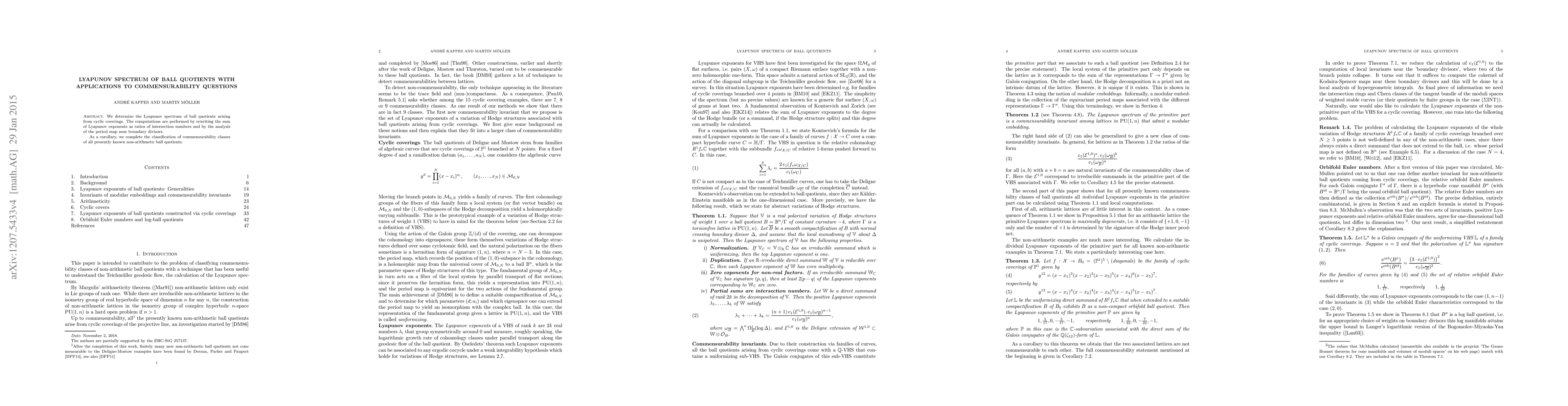 The paper determines the Lyapunov spectrum for ball quotients from cyclic coverings by analyzing intersection numbers and period maps, leading to a complete classification of commensurability classes for non-arithmetic ball quotients.