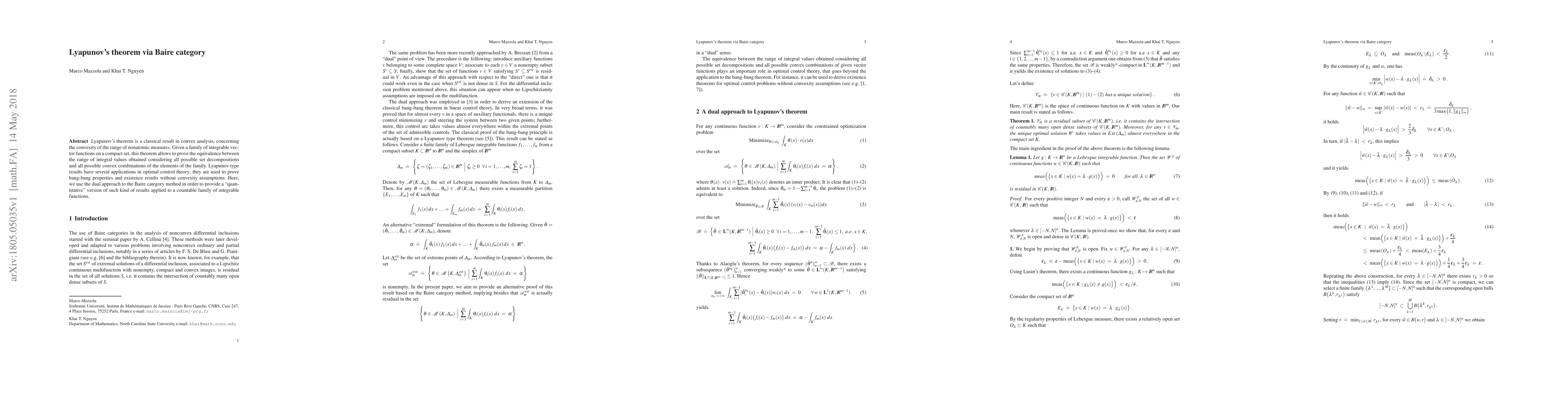 This paper presents a "quantitative" version of Lyapunov's theorem in convex analysis using the Baire category method, demonstrating the equivalence of integral values from various decompositions and convex combinations of integrable vector functions on a compact set, with applications in optimal control theory.
