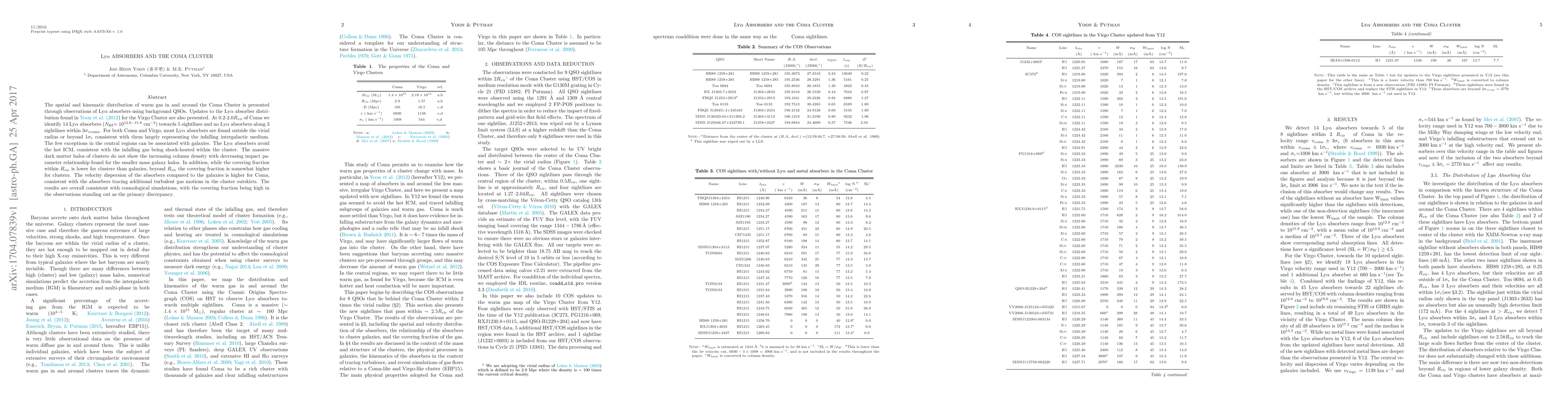 This paper investigates the spatial and kinematic distribution of warm gas in and around the Coma Cluster using Lyman-alpha absorbers, finding 14 absorbers outside the virial radius, consistent with infalling intergalactic medium. The study highlights differences in absorber behavior compared to galaxies and suggests higher turbulent gas motions in the cluster outskirts.