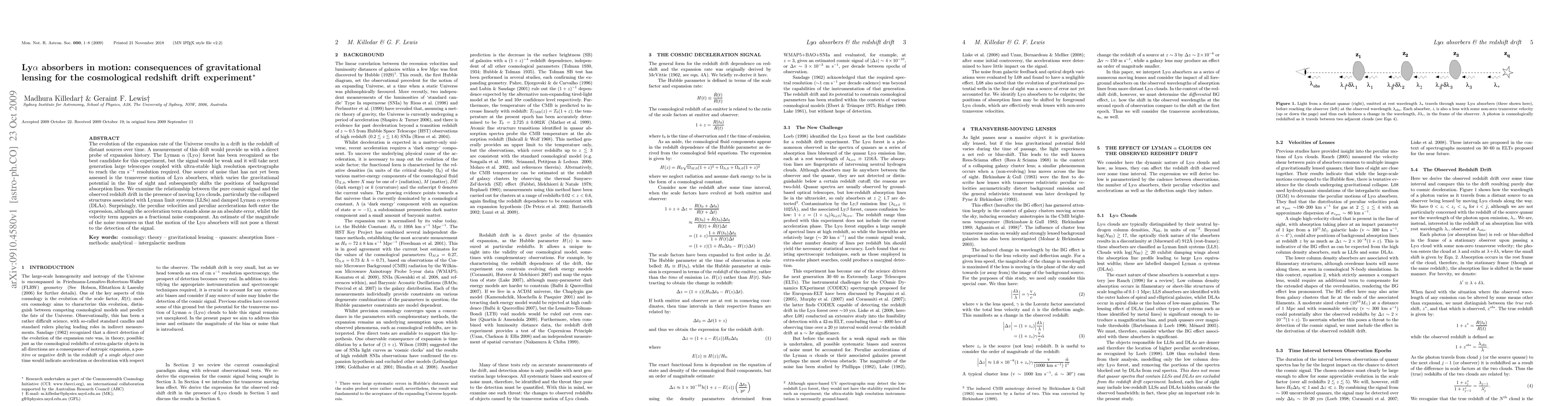 The evolution of the expansion rate of the Universe results in a drift in the redshift of distant sources over time. A measurement of this drift would provide us with a direct probe of expansion history. The Lyman alpha forest has been recognized as the best candidate for this experiment, but the signal would be weak and it will take next generation large telescopes coupled with ultra-stable high resolution spectrographs to reach the cm/s resolution required. One source of noise that has not yet been assessed is the transverse motion of Lyman alpha absorbers, which varies the gravitational potential in the line of sight and subsequently shifts the positions of background absorption lines. We examine the relationship between the pure cosmic signal and the observed redshift drift in the presence of moving Lyman alpha clouds, particularly the collapsed structures associated with Lyman limit systems (LLSs) and damped Lyman alpha systems (DLAs). Surprisingly, the peculiar velocities and peculiar accelerations both enter the expression, although the acceleration term stands alone as an absolute error, whilst the velocity term appears as a fractional noise component. An estimate of the magnitude of the noise reassures us that the motion of the Lyman alpha absorbers will not pose a threat to the detection of the signal.