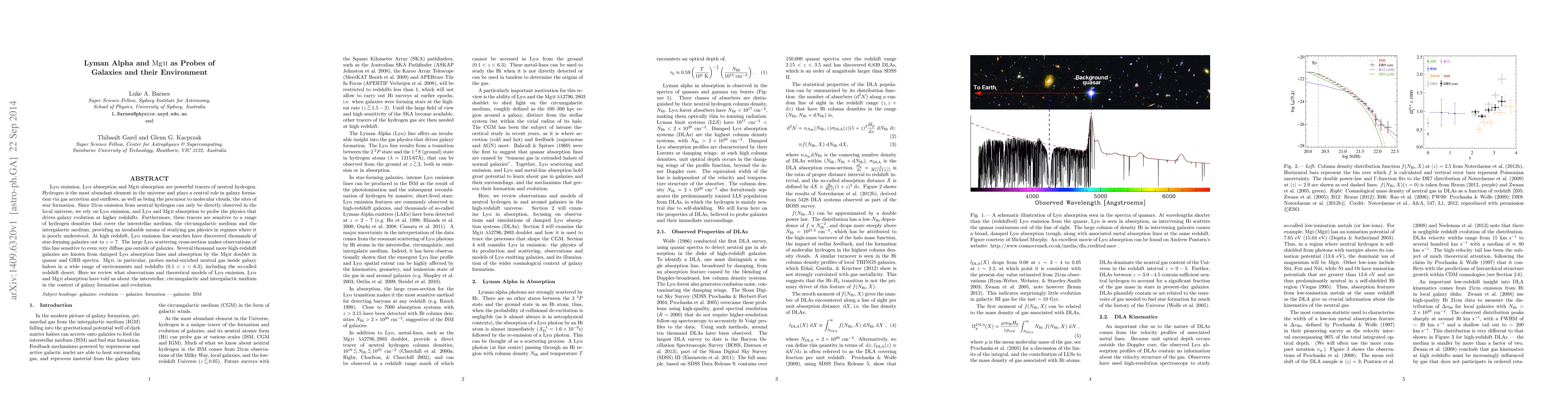 Ly{\alpha} emission, Ly{\alpha} absorption and MgII absorption are powerful tracers of neutral hydrogen. Hydrogen is the most abundant element in the universe and plays a central role in galaxy formation via gas accretion and outflows, as well as being the precursor to molecular clouds, the sites of star formation. Since 21cm emission from neutral hydrogen can only be directly observed in the local universe, we rely on Ly{\alpha} emission, and Ly{\alpha} and MgII absorption to probe the physics that drives galaxy evolution at higher redshifts. Furthermore, these tracers are sensitive to a range of hydrogen densities that cover the interstellar medium, the circumgalactic medium and the intergalactic medium, providing an invaluable means of studying gas physics in regimes where it is poorly understood. At high redshift, Ly{\alpha} emission line searches have discovered thousands of star-forming galaxies out to z = 7. The large Ly{\alpha} scattering cross-section makes observations of this line sensitive to even very diffuse gas outside of galaxies. Several thousand more high-redshift galaxies are known from damped Ly{\alpha} absorption lines and absorption by the MgII doublet in quasar and GRB spectra. MgII, in particular, probes metal-enriched neutral gas inside galaxy haloes in a wide range of environments and redshifts (0.1 < z < 6.3), including the so-called redshift desert. Here we review what observations and theoretical models of Ly{\alpha} emission, Ly{\alpha} and MgII absorption have told us about the interstellar, circumgalactic and intergalactic medium in the context of galaxy formation and evolution.
