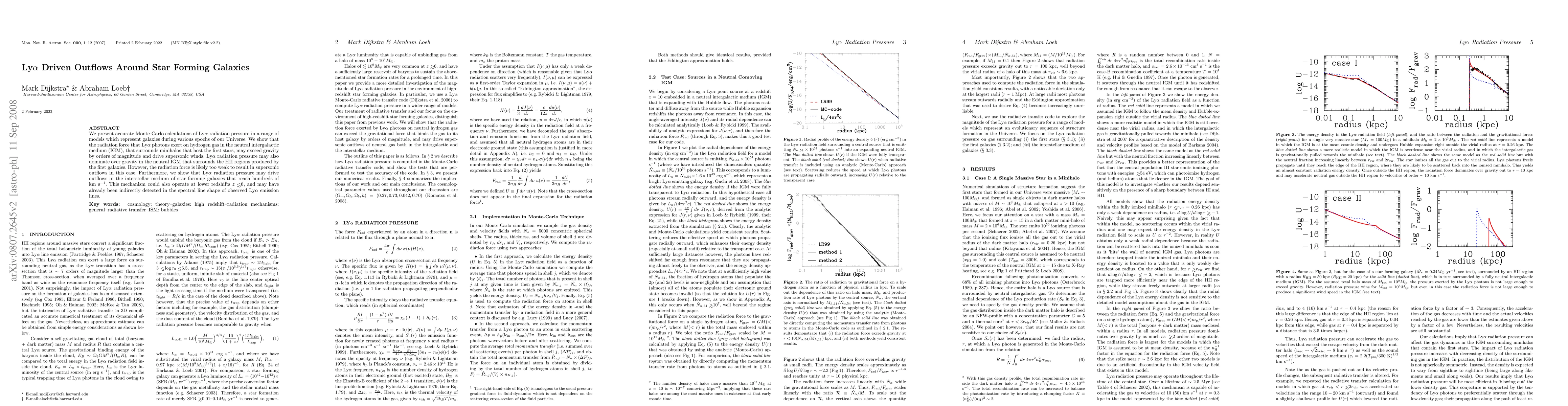 We present accurate Monte-Carlo calculations of Lyman Alpha (hereafter Lya) radiation pressure in a range of models which represent galaxies during various epochs of our Universe. We show that the radiation force that Lya photons exert on hydrogen gas in the neutral intergalactic medium (IGM), that surrounds minihalos that host the first stars, may exceed gravity by orders of magnitude and drive supersonic winds. Lya radiation pressure may also dominate over gravity in the neutral IGM that surrounds the HII regions produced by the first galaxies. However, the radiation force is likely too weak to result in supersonic outflows in this case. Furthermore, we show that Lya radiation pressure may drive outflows in the interstellar medium of star forming galaxies that reach hundreds of km/s. This mechanism could also operate at lower redshifts z<6, and may have already been indirectly detected in the spectral line shape of observed Lya emission lines.