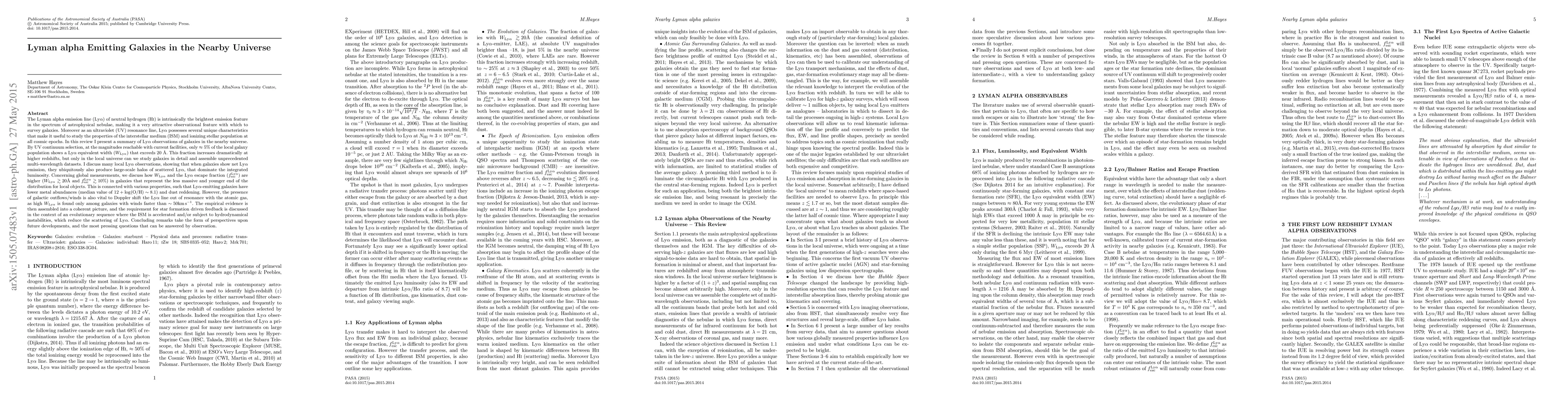 The Lya emission line of HI is intrinsically the brightest feature in the spectrum of astrophysical nebulae, making it a very attractive observational tool with which to survey galaxies. Moreover as a UV resonance line, Lya possesses several unique characteristics that make it useful to study the ISM and ionizing stellar population at all cosmic epochs. In this review I present a summary of Lya observations of galaxies in the nearby universe. At UV magnitudes reachable with current facilities, only ~5% of the local galaxy population shows a Lya equivalent width (EW_Lya) that exceeds 20\AA. This fraction increases dramatically at higher z, but only in the local universe can we study galaxies in detail and assemble unprecedented multi-wavelength datasets. I discuss many local Lya observations, showing that when galaxies show net Lya emission, they ubiquitously produce large halos of scattered Lya, that dominate the integrated luminosity. We discuss how global EW_Lya and the Lya escape fraction (fescLya) are higher (EW_Lya >~ 20\AA\ and fescLya> 10%) in galaxies that represent the less massive and younger end of the distributions for local objects. This is connected with various properties, such that Lya-emitters have lower metallicities (median value of 12+log(O/H) ~ 8.1) and dust reddening. However, the presence of galactic outflows is also vital to Doppler shift the Lya line out of resonance with the HI, as high EW_Lya is found only among galaxies with winds faster than ~50km/s. The evidence is then assembled into a coherent picture, and the requirement for star formation driven feedback is discussed in the context of an evolutionary sequence where the ISM is accelerated and/or subject to fluid instabilities, which reduce the scattering of Lya. Concluding remarks take the form of perspectives upon the most pressing questions that can be answered by observation.