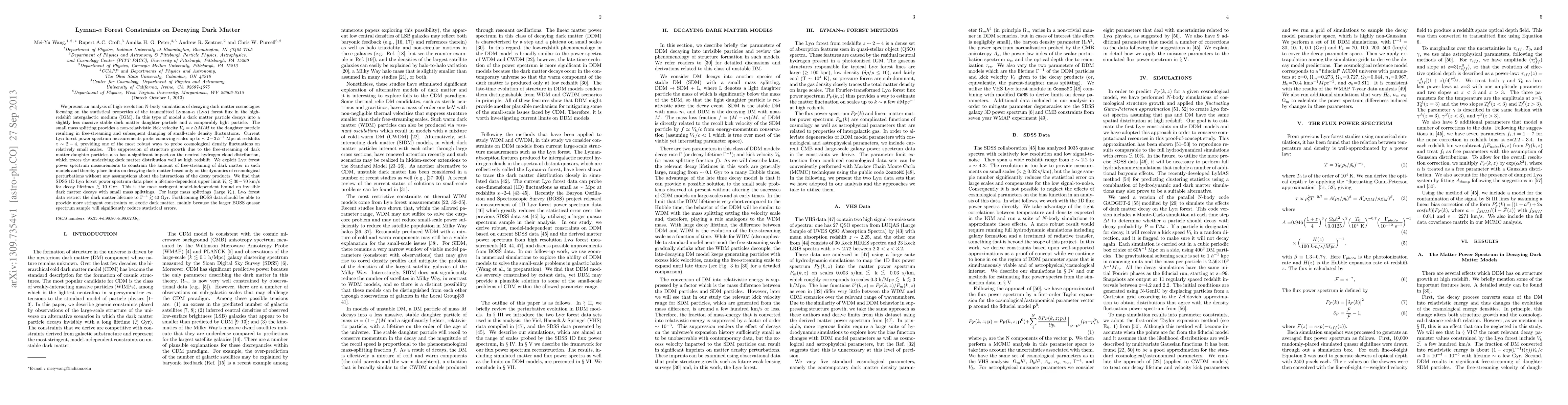 This paper analyzes high-resolution N-body simulations to study the impact of decaying dark matter on the Lyman-alpha forest flux, placing model-independent constraints on the decay parameters. It finds that current SDSS data limit the decay velocity to V_k < 30-70 km/s for decay lifetimes < 10 Gyr, offering the most stringent bounds on such decays without assumptions on decay product interactions.