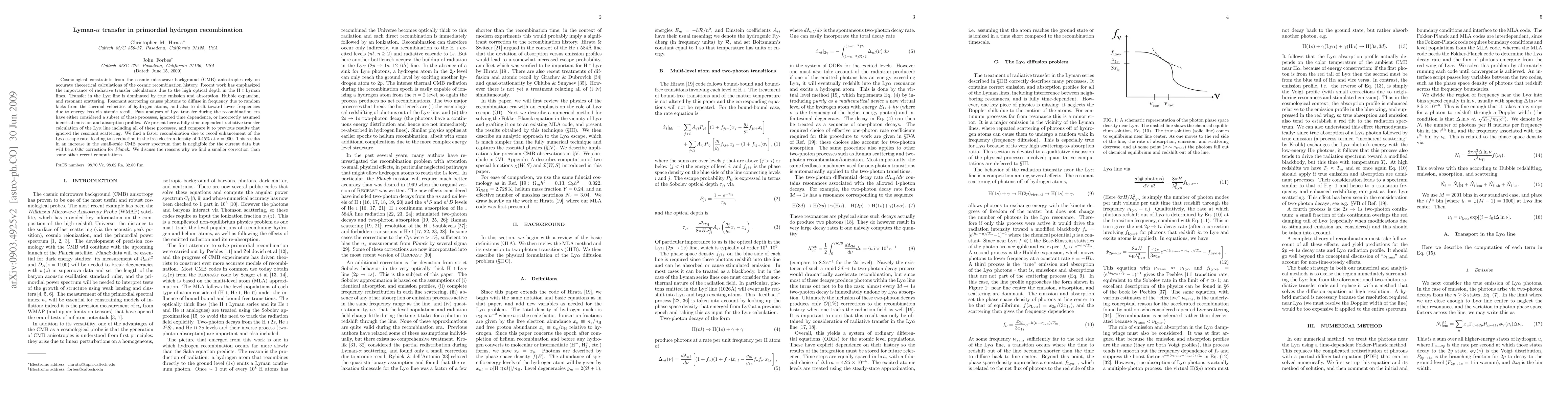 This paper presents a comprehensive time-dependent radiative transfer model for the Lyman-alpha line during primordial hydrogen recombination, revealing a faster recombination rate due to recoil enhancement. The model corrects previous assumptions and predicts a minor reduction in free electron density, resulting in a negligible but detectable increase in the small-scale cosmic microwave background power spectrum.