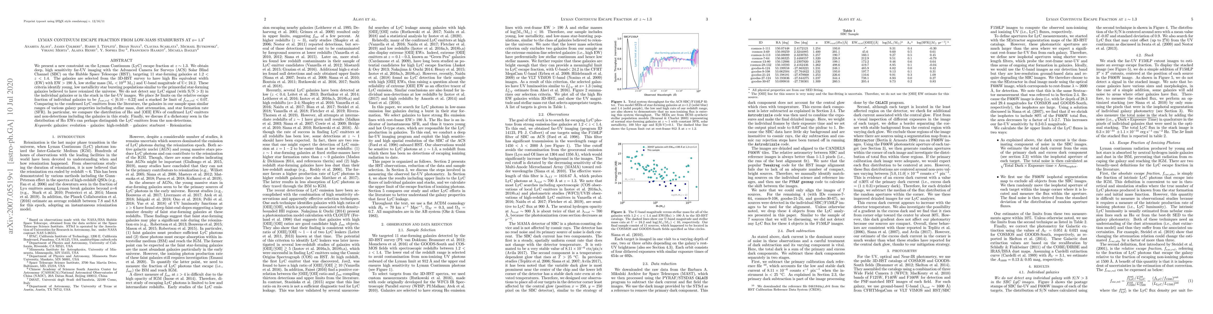 This study uses HST imaging to investigate the Lyman Continuum (LyC) escape fraction in low-mass starburst galaxies at z~1.3, finding no detectable LyC signal and placing $3\sigma$ limits on the escape fraction, suggesting these galaxies are not significant LyC emitters despite their star-forming properties.