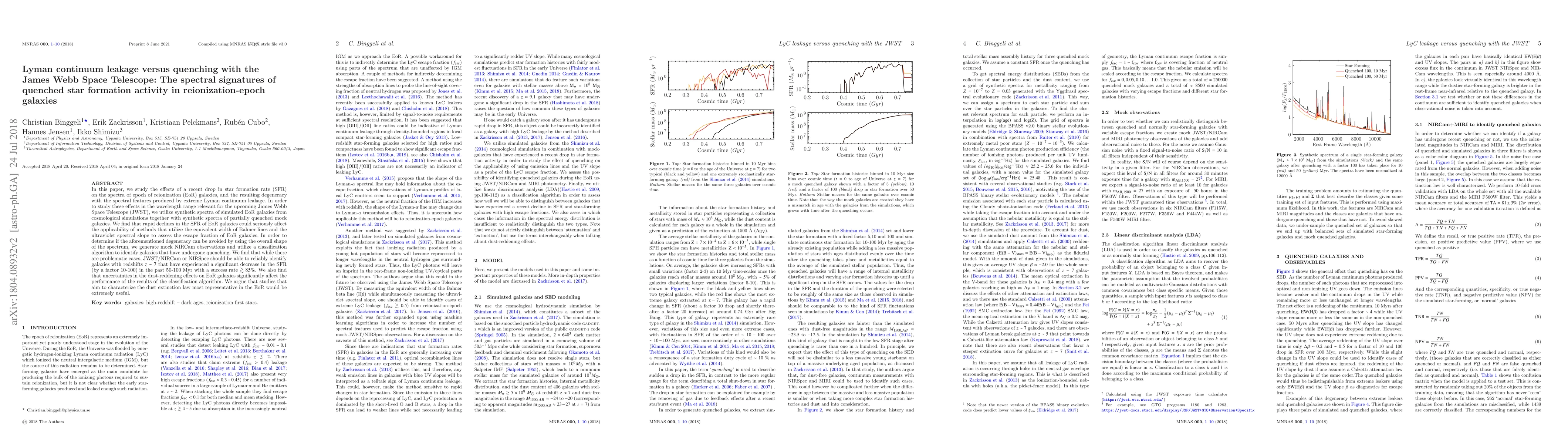 This paper investigates the spectral signatures of quenched star formation in reionization-epoch galaxies, finding that rapid declines in star formation can confuse methods assessing Lyman continuum leakage. Using JWST simulations, the authors conclude that JWST can reliably identify quenched galaxies at redshifts $z\sim 7$ with high success, though dust-reddening uncertainties pose challenges.