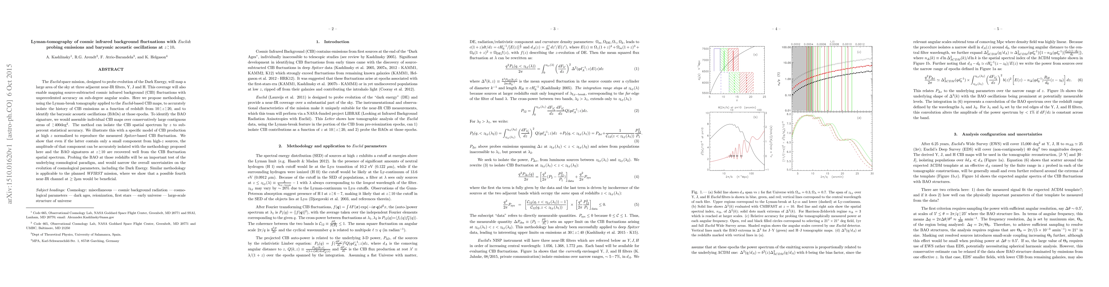 This research proposes using Euclid space mission's near-IR data and Lyman-break tomography to map and isolate the cosmic infrared background (CIB) fluctuations from z=10 to 20. The methodology aims to accurately measure CIB emission history and detect baryonic acoustic oscillations (BAOs) at these high redshifts, which would test cosmological models and refine Dark Energy evolution understanding. The approach could also be applied to the planned WFIRST mission, with a fourth near-IR channel enhancing benefits.