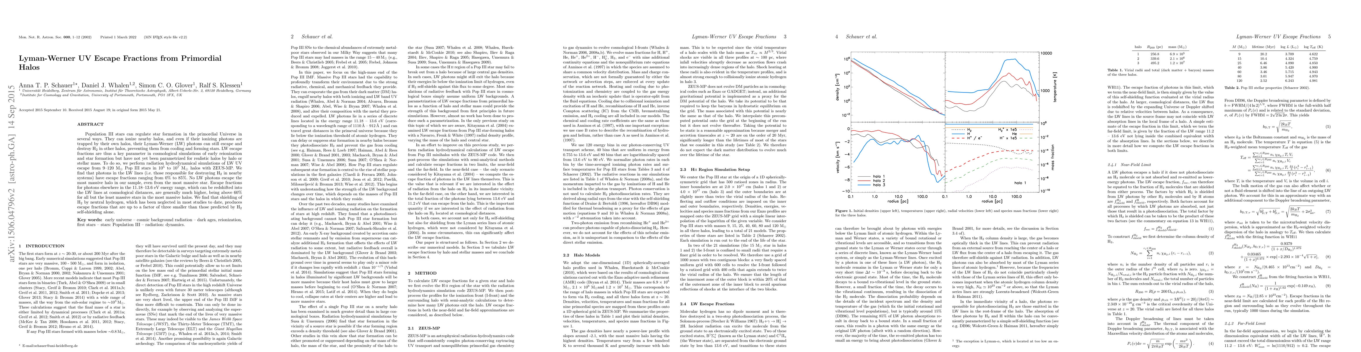 This paper investigates Lyman-Werner (LW) UV photon escape fractions from primordial halos, finding that LW photons can escape and disrupt H$_2$ in neighboring halos, thus regulating star formation. The study reveals escape fractions ranging from 0% to 85% and highlights the significant role of H$_2$ shielding by neutral hydrogen in reducing these fractions.