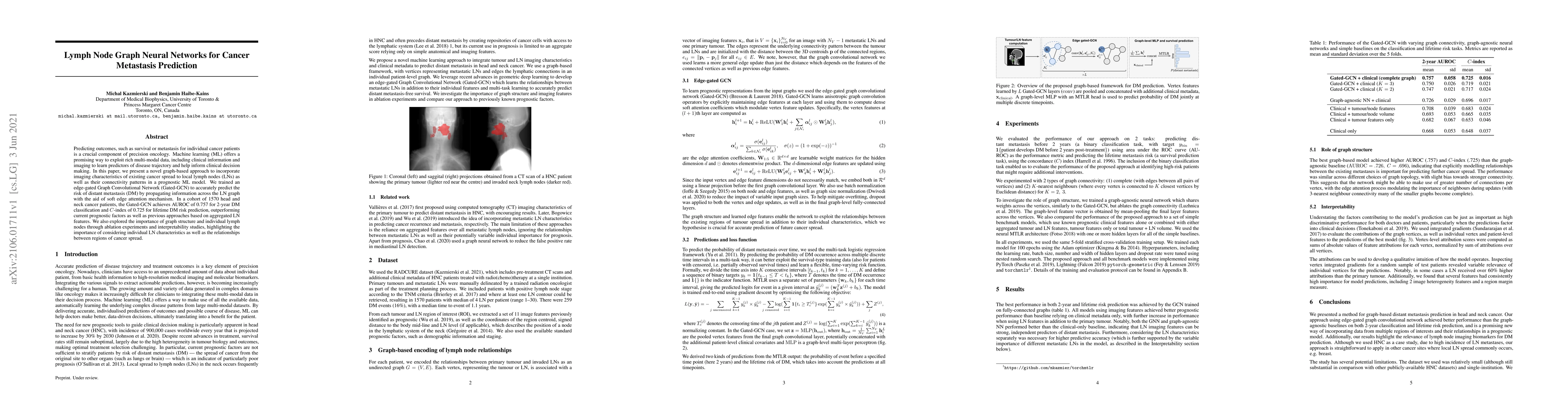 This paper introduces a graph-based machine learning model, Gated-GCN, to predict cancer metastasis risk by analyzing lymph node imaging and connectivity patterns. The model outperforms existing methods and highlights the significance of both individual lymph node features and their interrelations.
