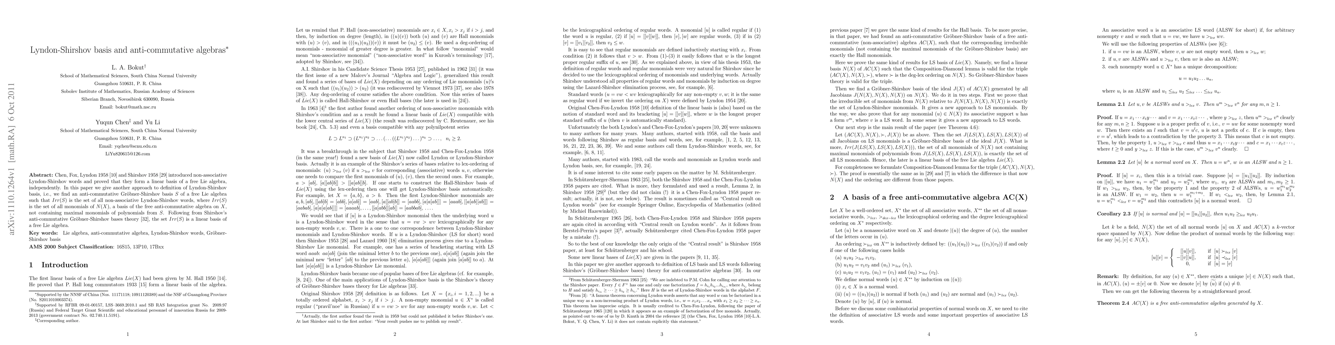 This paper presents an alternative definition of Lyndon-Shirshov basis via an anti-commutative Gröbner-Shirshov basis S, where Irr(S) — the set of non-associative Lyndon-Shirshov words — forms a linear basis of a free Lie algebra. It builds on Chen, Fox, Lyndon (1958) and Shirshov (1958) work, along with Shirshov's (1962) anti-commutative Gröbner-Shirshov bases theory.