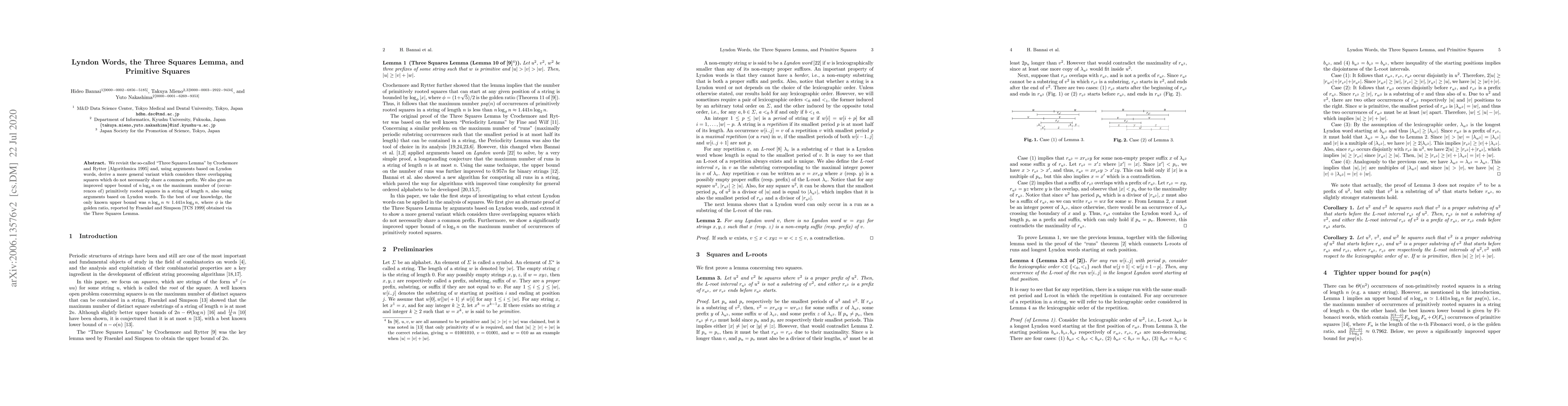Researchers derive a new variant of the Three Squares Lemma using Lyndon words to find overlapping squares with no shared prefix in strings, improving an existing upper bound on primitive squares.