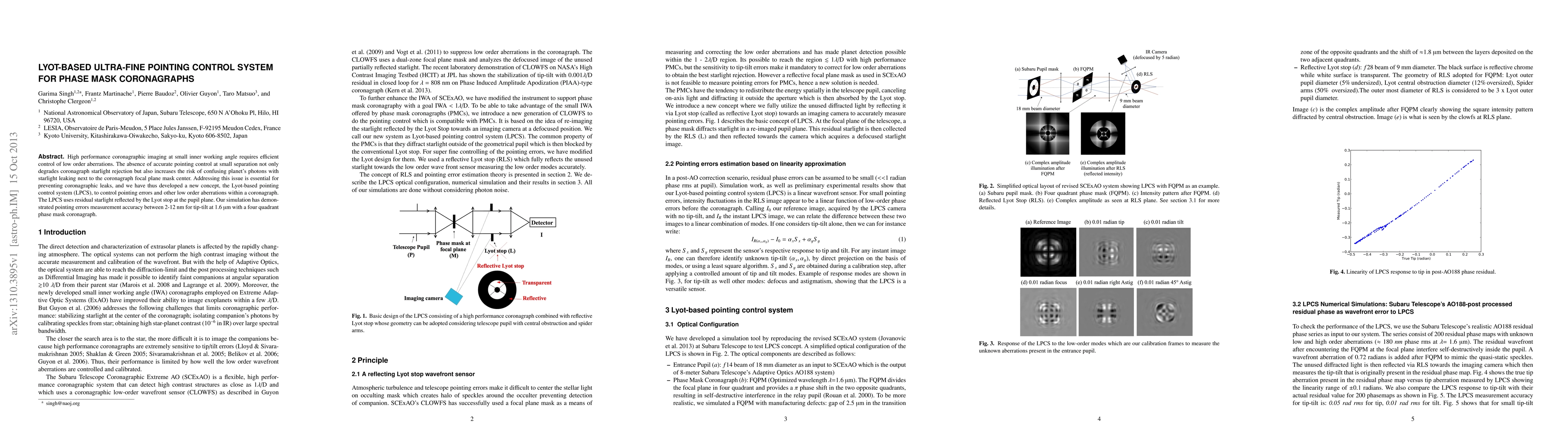 High performance coronagraphic imaging at small inner working angle requires efficient control of low order aberrations. The absence of accurate pointing control at small separation not only degrades coronagraph starlight rejection but also increases the risk of confusing planet's photons with starlight leaking next to the coronagraph focal plane mask center. Addressing this issue is essential for preventing coronagraphic leaks, and we have thus developed a new concept, the Lyot-based pointing control system (LPCS), to control pointing errors and other low order aberrations within a coronagraph. The LPCS uses residual starlight reflected by the Lyot stop at the pupil plane. Our simulation has demonstrated pointing errors measurement accuracy between 2-12 nm for tip-tilt at 1.6 micron with a four quadrant phase mask coronagraph.