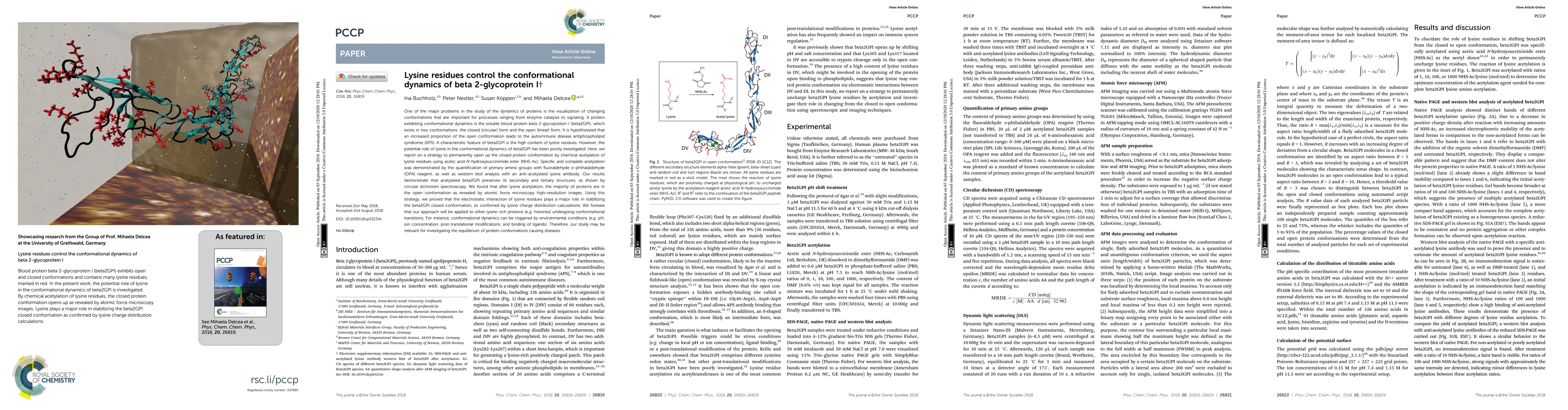 One of the major problems in the study of the dynamics of proteins is the visualization of changing conformations that are important for processes ranging from enzyme catalysis to signaling. A protein exhibiting conformational dynamics is the soluble blood protein beta 2-glycoprotein I (beta2GPI), which exists in two conformations: the closed (circular) form and the open (linear) form. It is hypothesized that an increased proportion of the open conformation leads to the autoimmune disease antiphospholipid syndrome (APS). A characteristic feature of beta2GPI is the high content of lysine residues. However, the potential role of lysine in the conformational dynamics of beta2GPI has been poorly investigated. Here, we report on a strategy to permanently open up the closed protein conformation by chemical acetylation of lysine residues using acetic acid N-hydroxysuccinimide ester (NHS-Ac). Specific and complete acetylation was demonstrated by the quantification of primary amino groups with fluoraldehyde o-phthalaldehyde (OPA) reagent, as well as western blot analysis with an anti-acetylated lysine antibody. Our results demonstrate that acetylated beta2GPI preserves its secondary and tertiary structures, as shown by circular dichroism spectroscopy. We found that after lysine acetylation, the majority of proteins are in the open conformation as revealed by atomic force microscopy high-resolution images. Using this strategy, we proved that the electrostatic interaction of lysine residues plays a major role in stabilizing the beta2GPI closed conformation, as confirmed by lysine charge distribution calculations. We foresee that our approach will be applied to other lysine-rich proteins (e.g. histones) undergoing conformational transitions.