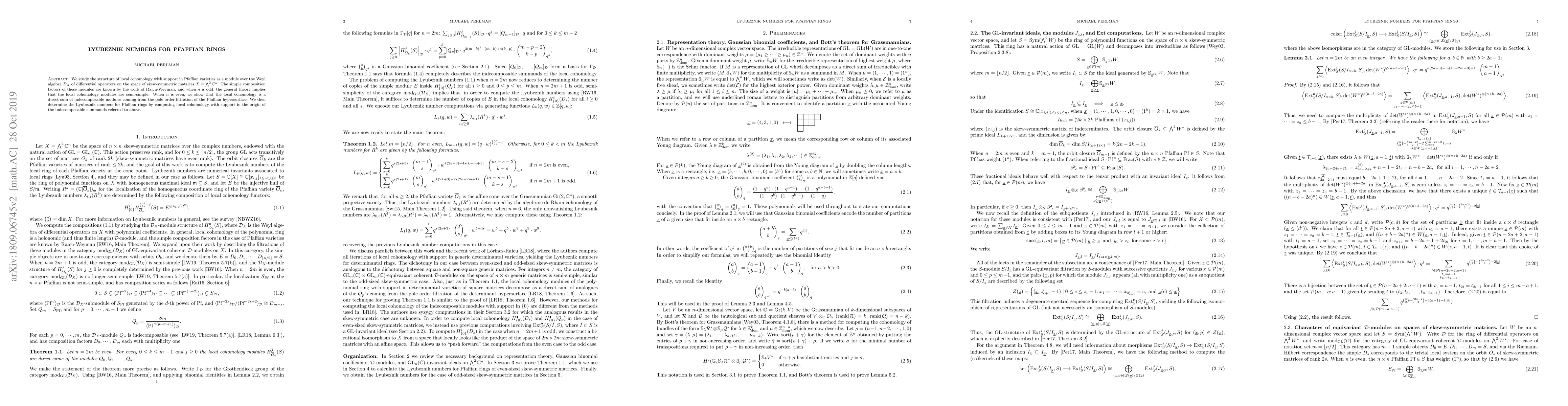 This paper investigates local cohomology modules over Pfaffian rings supported by Pfaffian varieties, revealing semi-simple behavior when the skew-symmetry dimension is odd. For even dimensions, it decomposes local cohomology into indecomposable modules derived from pole order filtration, and computes Lyubeznik numbers by analyzing local cohomology with respect to the homogeneous maximal ideal.