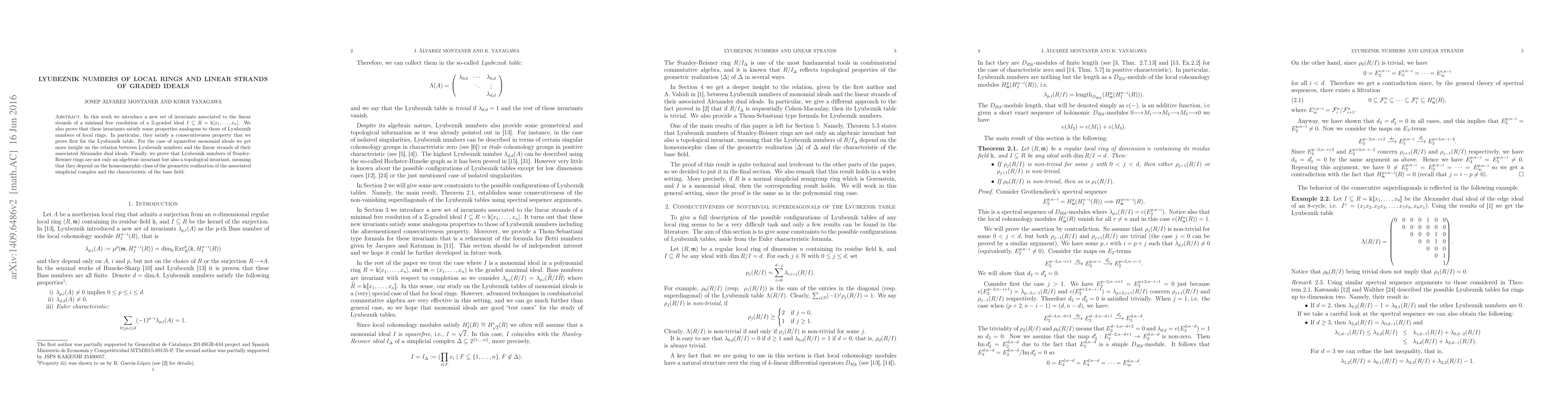 This paper introduces new invariants linked to the linear strands of minimal free resolutions of $\mathbb{Z}$-graded ideals in polynomial rings, proving properties analogous to Lyubeznik numbers. It further explores the relationship between these invariants and Lyubeznik numbers, particularly for squarefree monomial ideals and Stanley-Reisner rings, demonstrating their topological significance.