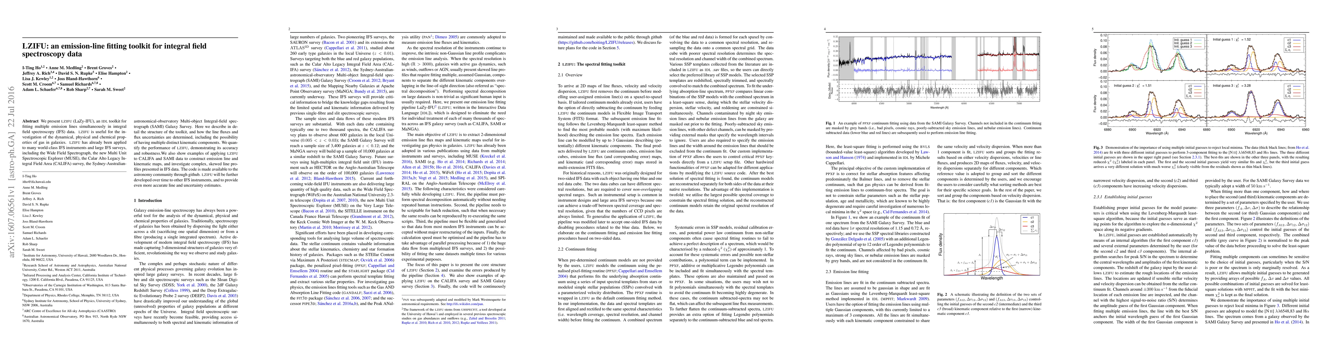 LZIFU is an IDL toolkit designed to fit multiple emission lines in integral field spectroscopy data, aiding in the analysis of gas properties in galaxies. It is robust and has been used with various IFS instruments and surveys, providing detailed emission line and kinematic maps.