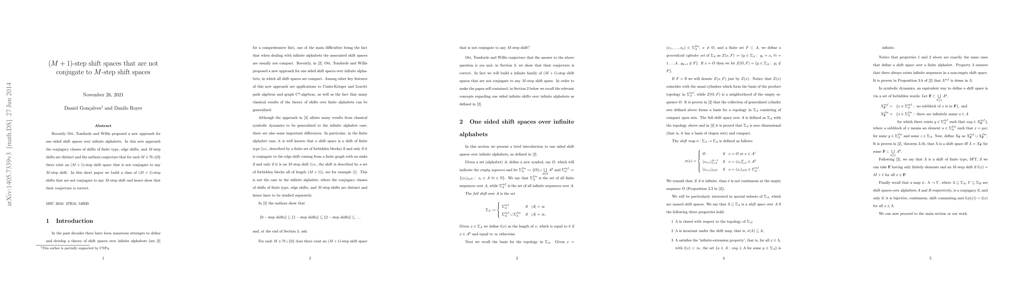 The paper introduces a method for constructing (M+1)-step shift spaces not conjugate to M-step shifts using auxiliary functions and forbidden words, providing a clear and constructive proof of the conjecture.