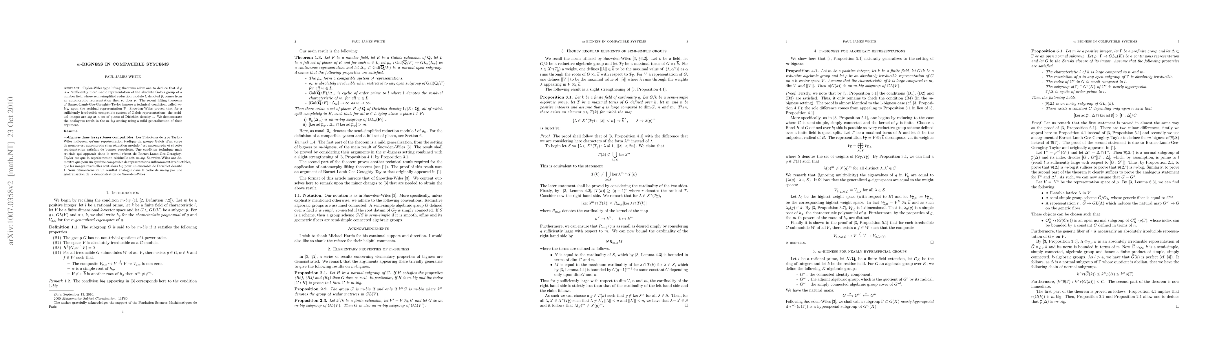 Taylor-Wiles type lifting theorems allow one to deduce that for $\rho$ a "sufficiently nice" $l$-adic representation of the absolute Galois group of a number field whose semi-simplified reduction modulo $l$, denoted $\overline{\rho}$, comes from an automorphic representation then so does $\rho$. The recent lifting theorems of Barnet-Lamb-Gee-Geraghty-Taylor impose a technical condition, called \emph{$m$-big}, upon the residual representation $\overline{\rho}$. Snowden-Wiles proved that for a sufficiently irreducible compatible system of Galois representations, the residual images are \emph{big} at a set of places of Dirichlet density $1$. We demonstrate the analogous result in the \emph{$m$-big} setting using a mild generalization of their argument.