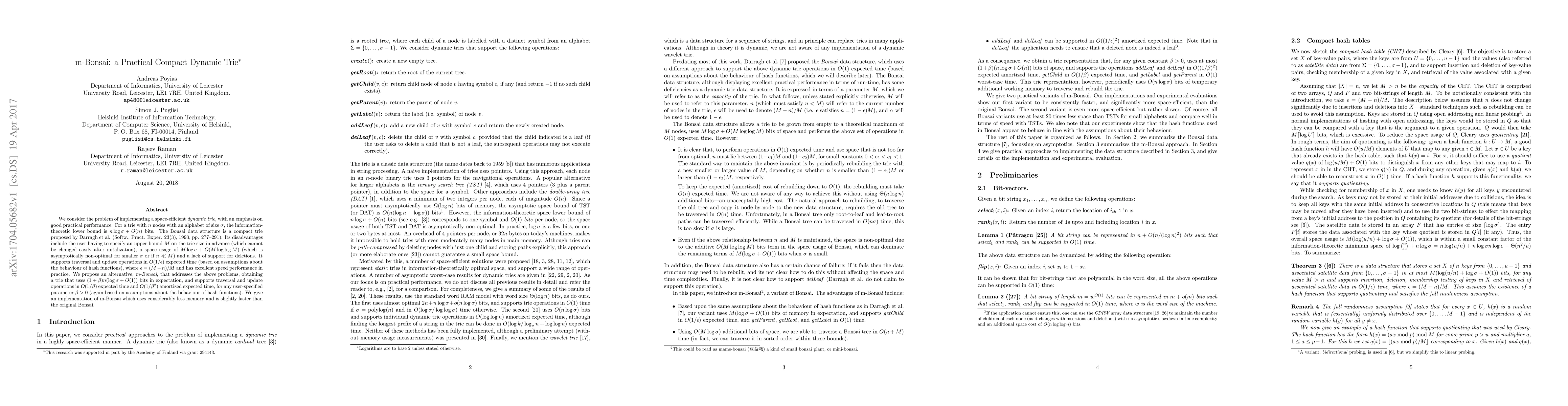 The paper proposes m-Bonsai, a practical compact dynamic trie that improves upon the Bonsai data structure by eliminating the need for a fixed upper bound, reducing space usage, and supporting dynamic updates without sacrificing performance. m-Bonsai achieves optimal space efficiency and provides flexible traversal and update operations.
