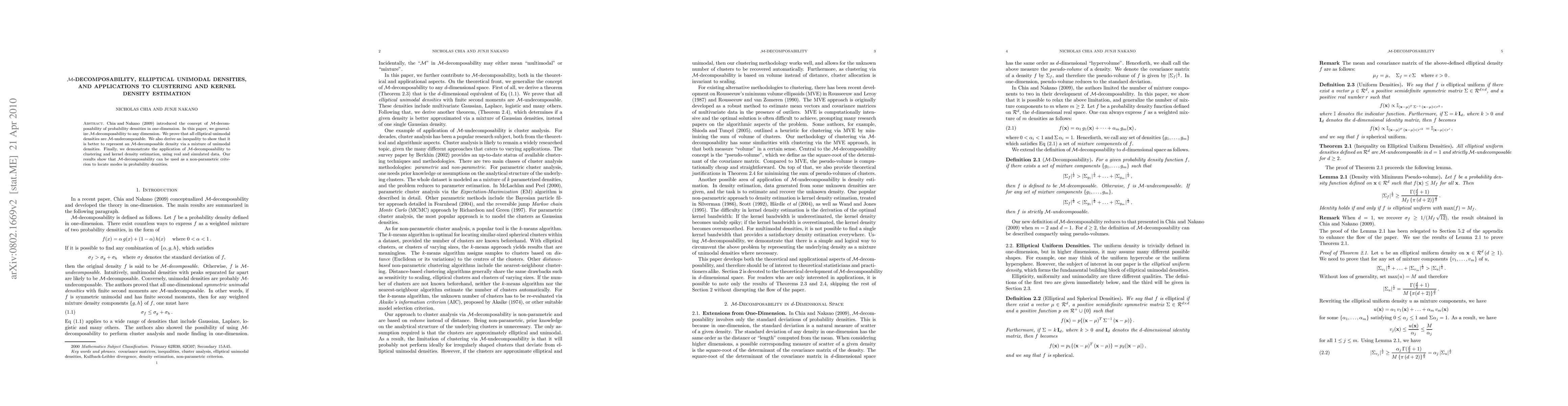 This paper proves that elliptical unimodal densities are M-undecomposable, showing that it is better to represent them as a mixture of unimodal densities. It also demonstrates the application of M-decomposability to clustering and kernel density estimation.