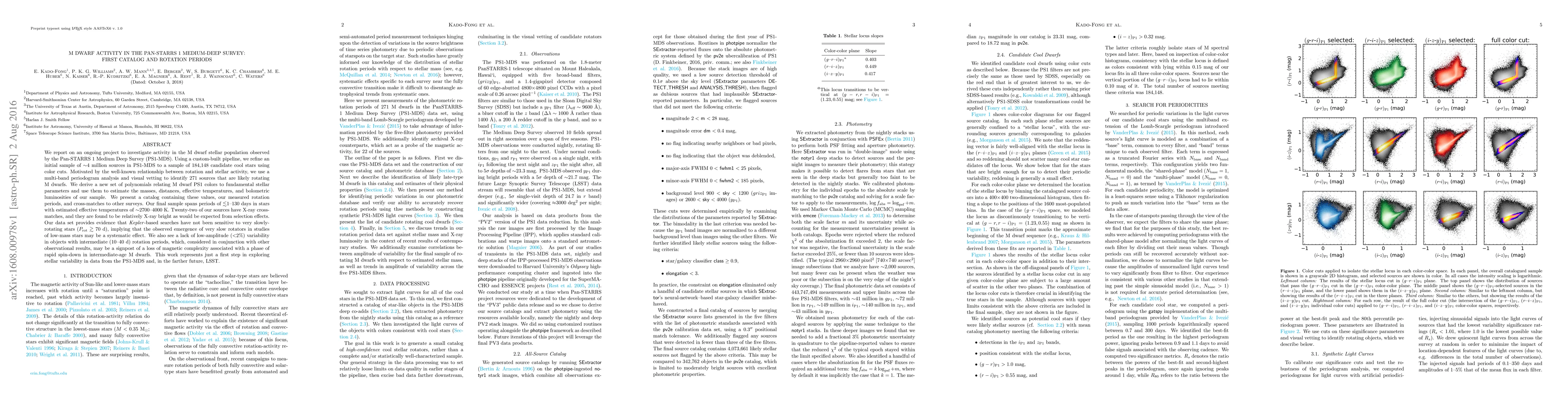 We report on an ongoing project to investigate activity in the M dwarf stellar population observed by the Pan-STARRS 1 Medium Deep Survey (PS1-MDS). Using a custom-built pipeline, we refine an initial sample of $\approx$ 4 million sources in PS1-MDS to a sample of 184,148 candidate cool stars using color cuts. Motivated by the well-known relationship between rotation and stellar activity, we use a multi-band periodogram analysis and visual vetting to identify 271 sources that are likely rotating M dwarfs. We derive a new set of polynomials relating M dwarf PS1 colors to fundamental stellar parameters and use them to estimate the masses, distances, effective temperatures, and bolometric luminosities of our sample. We present a catalog containing these values, our measured rotation periods, and cross-matches to other surveys. Our final sample spans periods of $\lesssim$1-130 days in stars with estimated effective temperatures of $\approx$ 2700-4000 K. Twenty-two of our sources have X-ray cross-matches, and they are found to be relatively X-ray bright as would be expected from selection effects. Our data set provides evidence that Kepler-based searches have not been sensitive to very slowly-rotating stars ($P_{\rm rot} \gtrsim 70$ d), implying that the observed emergence of very slow rotators in studies of low-mass stars may be a systematic effect. We also see a lack of low-amplitude ($<$2%) variability in objects with intermediate (10-40 d) rotation periods, which, considered in conjunction with other observational results, may be a signpost of a loss of magnetic complexity associated with a phase of rapid spin-down in intermediate-age M dwarfs. This work represents just a first step in exploring stellar variability in data from the PS1-MDS and, in the farther future, LSST.