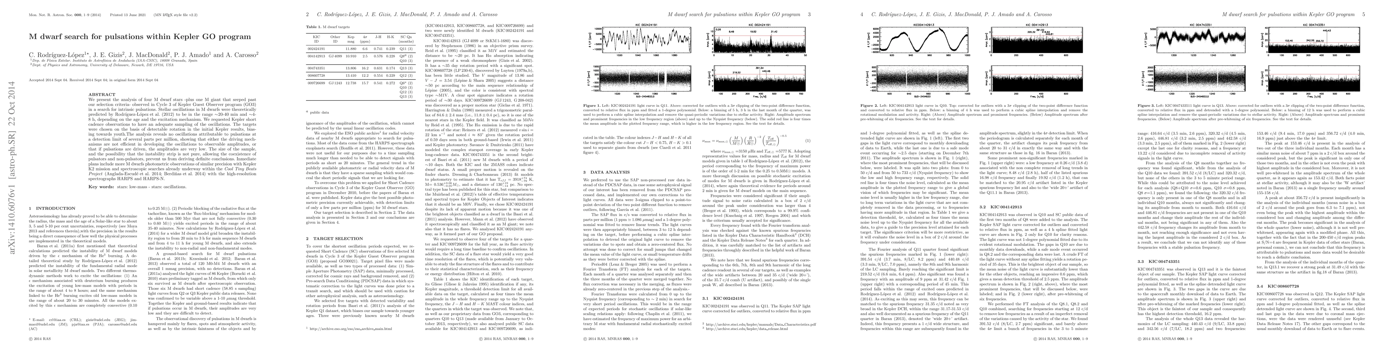 We present the analysis of four M dwarf stars -plus one M giant that seeped past our selection criteria- observed in Cycle 3 of Kepler Guest Observer program (GO3) in a search for intrinsic pulsations. Stellar oscillations in M dwarfs were theoretically predicted by Rodr\'iguez-L\'opez et al. (2012) to be in the range ~20-40 min and ~4-8 h, depending on the age and the excitation mechanism. We requested Kepler short cadence observations to have an adequate sampling of the oscillations. The targets were chosen on the basis of detectable rotation in the initial Kepler results, biasing towards youth.The analysis reveals no oscillations attributable to pulsations at a detection limit of several parts per million, showing that either the driving mechanisms are not efficient in developing the oscillations to observable amplitudes, or that if pulsations are driven, the amplitudes are very low. The size of the sample, and the possibility that the instability strip is not pure, allowing the coexistence of pulsators and non-pulsators, prevent us from deriving definite conclusions. Inmediate plans include more M dwarfs photometric observations of similar precision with Kepler K2 mission and spectroscopic searches already underway within the Cool Tiny Beats Project (Anglada-Escud\'e et al. 2014, Berdi\~nas et al. 2014) with the high-resolution spectrographs HARPS and HARPS-N.