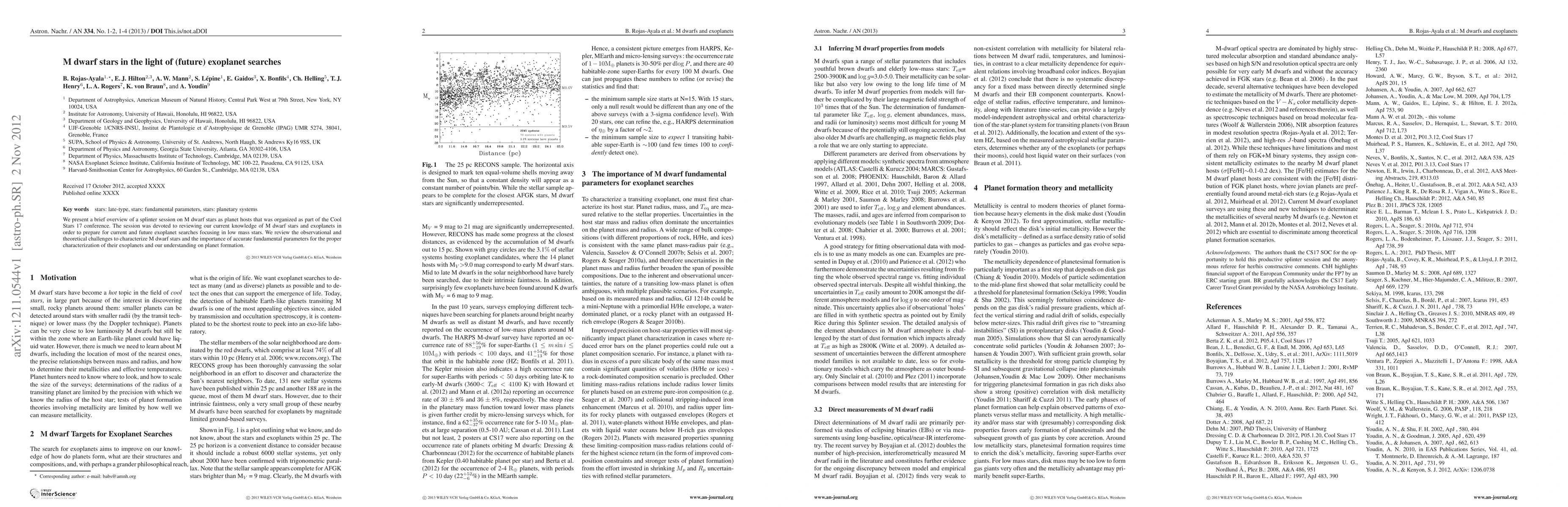This paper provides an overview of M dwarf stars as potential exoplanet hosts, highlighting current knowledge and challenges in characterizing these stars to better prepare for future exoplanet searches, emphasizing the importance of accurate fundamental parameters for understanding planet formation.