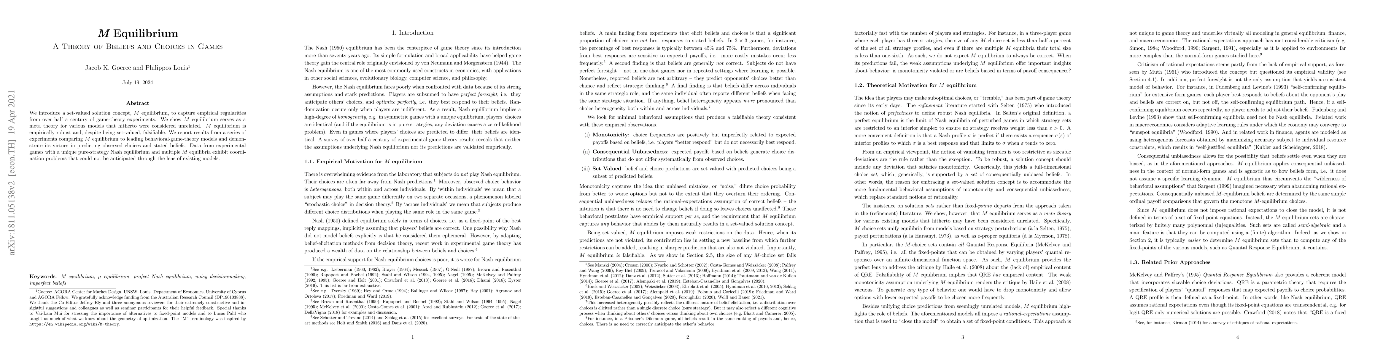 We introduce a set-valued solution concept, M equilibrium, to capture empirical regularities from over half a century of game-theory experiments. We show M equilibrium serves as a meta theory for various models that hitherto were considered unrelated. M equilibrium is empirically robust and, despite being set-valued, falsifiable. We report results from a series of experiments comparing M equilibrium to leading behavioral-game-theory models and demonstrate its virtues in predicting observed choices and stated beliefs. Data from experimental games with a unique pure-strategy Nash equilibrium and multiple M equilibria exhibit coordination problems that could not be anticipated through the lens of existing models.