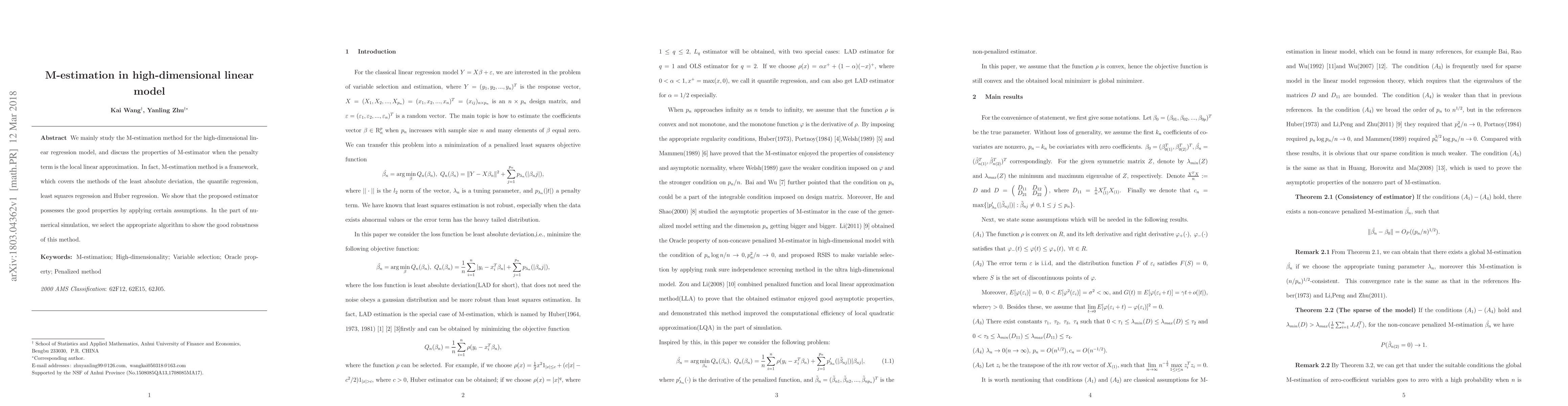 This paper explores the M-estimation method for high-dimensional linear regression models, demonstrating its robustness and applicability in various scenarios. It showcases the estimator's good properties through numerical simulations.
