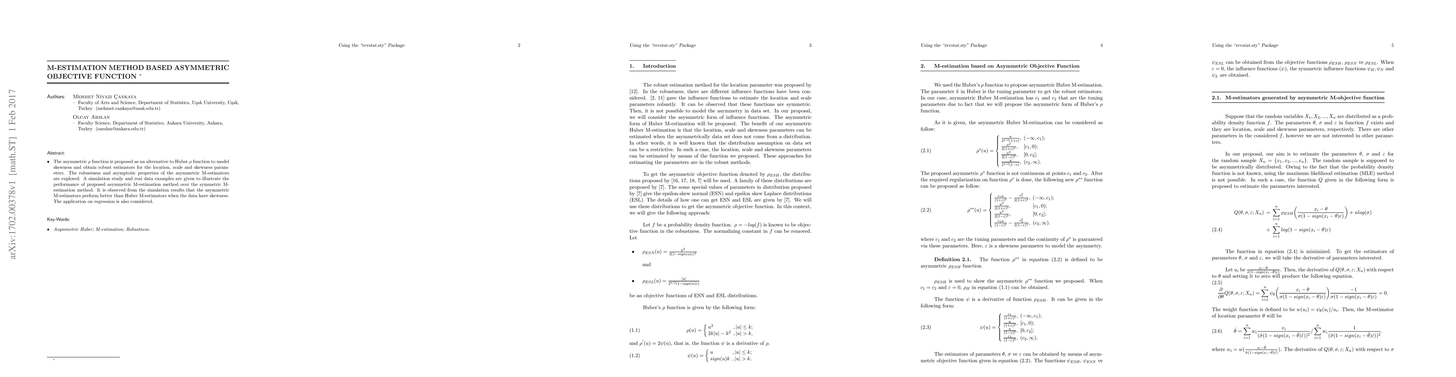 This paper proposes an asymmetric objective function for M-estimation to model skewness and obtain robust estimators for location, scale, and skewness parameters. Simulation studies and real data examples show that the asymmetric M-estimators outperform Huber M-estimators, especially in skewed data, and are also applied to regression analysis.
