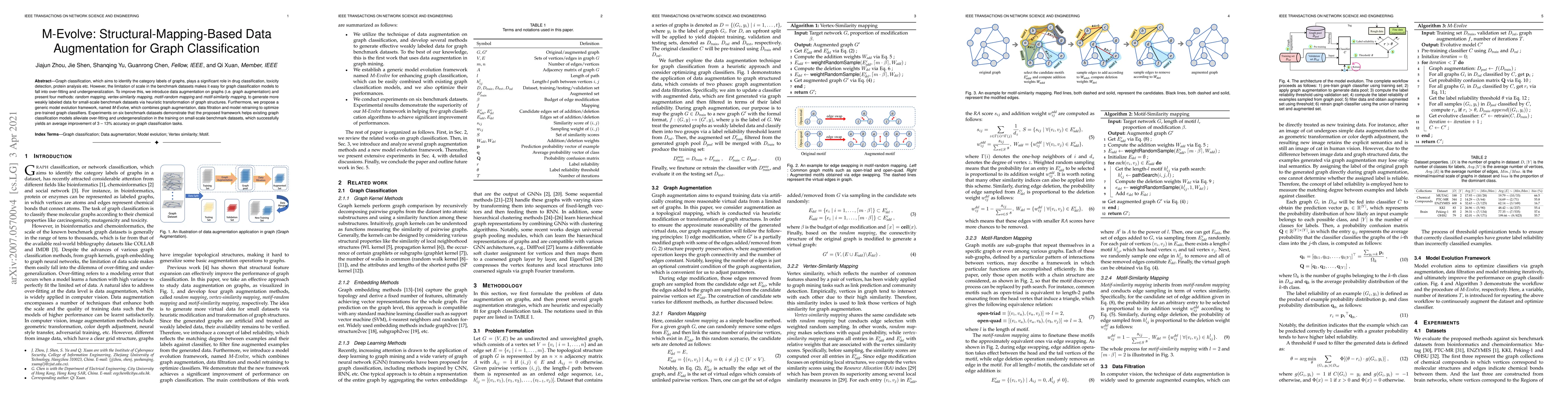The paper introduces M-Evolve, a framework for structural-mapping-based data augmentation to enhance graph classification, addressing overfitting in small-scale datasets. It proposes four graph augmentation methods and demonstrates an average 3-13% accuracy improvement across six benchmark datasets.
