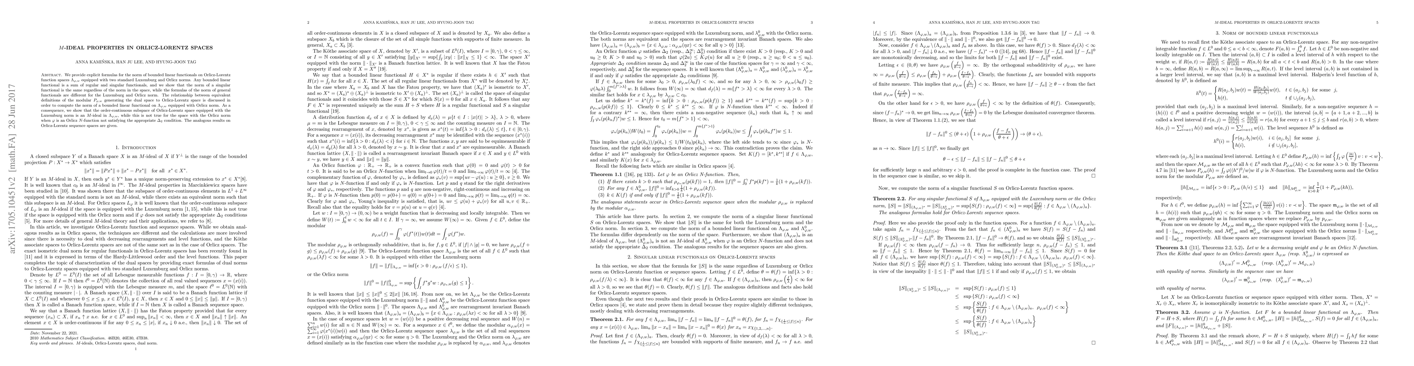 The research distinguishes itself by providing detailed explicit formulas for norms of functionals in Orlicz-Lorentz spaces, contrasting the behavior under Luxemburg and Orlicz norms, and identifying specific conditions under which order-continuous subspaces are $M$-ideals.