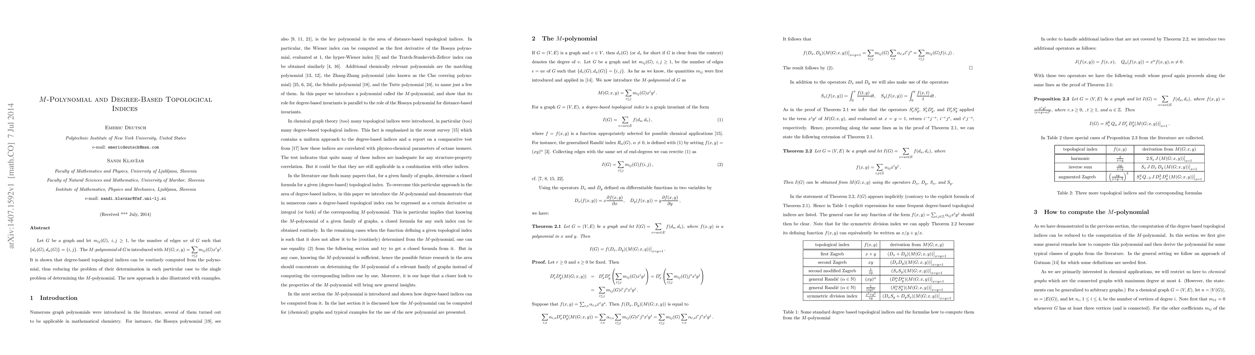 This paper introduces the M-polynomial for graph analysis, which simplifies the computation of degree-based topological indices. The approach is demonstrated with examples.