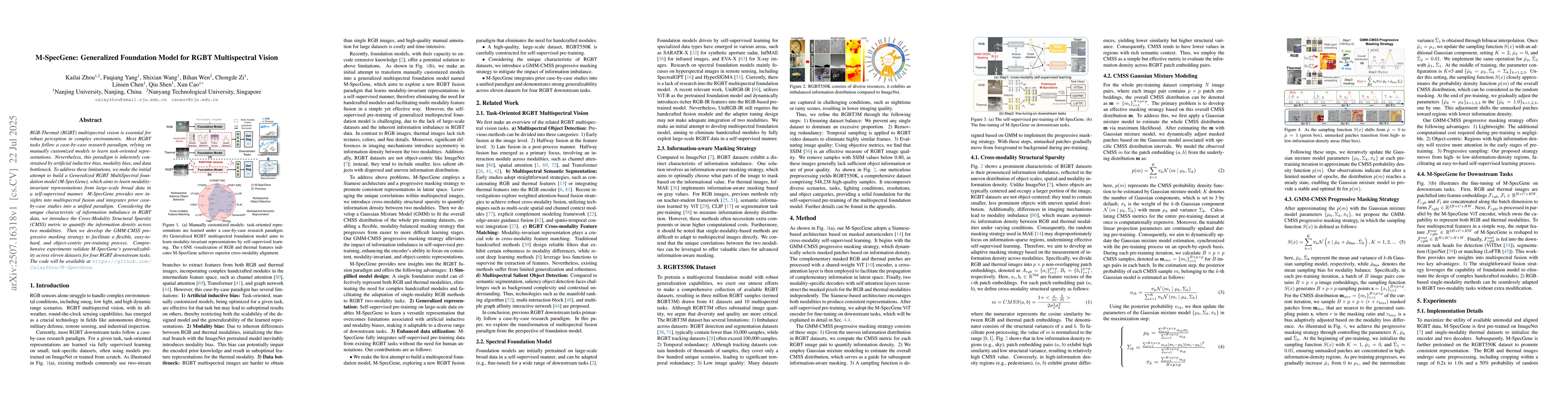 RGB-Thermal (RGBT) multispectral vision is essential for robust perception in complex environments. Most RGBT tasks follow a case-by-case research paradigm, relying on manually customized models to learn task-oriented representations. Nevertheless, this paradigm is inherently constrained by artificial inductive bias, modality bias, and data bottleneck. To address these limitations, we make the initial attempt to build a Generalized RGBT MultiSpectral foundation model (M-SpecGene), which aims to learn modality-invariant representations from large-scale broad data in a self-supervised manner. M-SpecGene provides new insights into multispectral fusion and integrates prior case-by-case studies into a unified paradigm. Considering the unique characteristic of information imbalance in RGBT data, we introduce the Cross-Modality Structural Sparsity (CMSS) metric to quantify the information density across two modalities. Then we develop the GMM-CMSS progressive masking strategy to facilitate a flexible, easy-to-hard, and object-centric pre-training process. Comprehensive experiments validate M-SpecGene's generalizability across eleven datasets for four RGBT downstream tasks. The code will be available at https://github.com/CalayZhou/M-SpecGene.