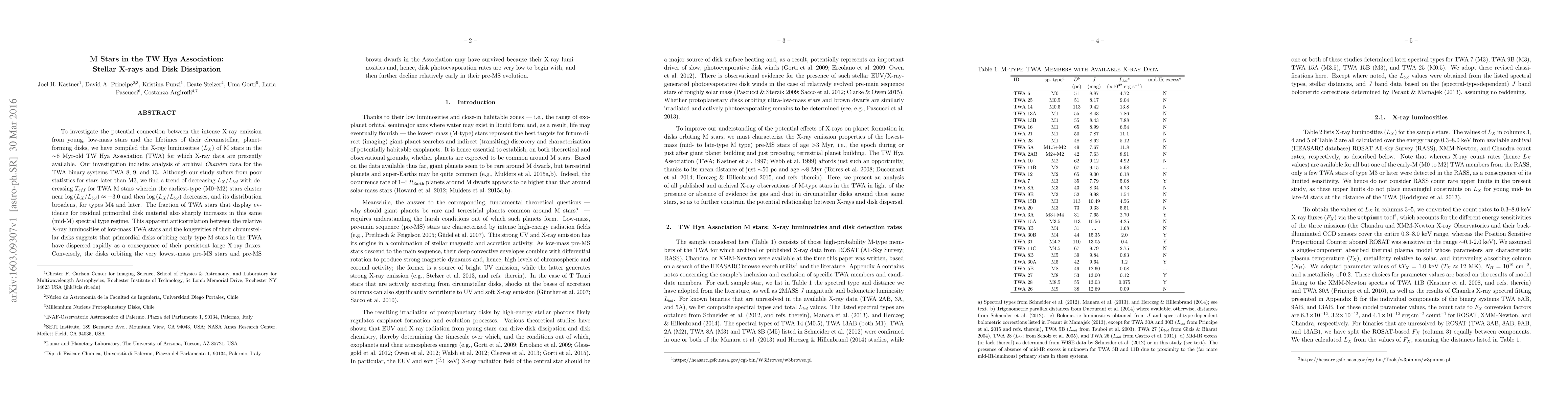 To investigate the potential connection between the intense X-ray emission from young, low-mass stars and the lifetimes of their circumstellar, planet-forming disks, we have compiled the X-ray luminosities ($L_X$) of M stars in the $\sim$8 Myr-old TW Hya Association (TWA) for which X-ray data are presently available. Our investigation includes analysis of archival Chandra data for the TWA binary systems TWA 8, 9, and 13. Although our study suffers from poor statistics for stars later than M3, we find a trend of decreasing $L_X/L_{bol}$ with decreasing $T_{eff}$ for TWA M stars wherein the earliest-type (M0--M2) stars cluster near $\log{(L_X/L_{bol})} \approx -3.0$ and then $\log{(L_X/L_{bol})}$ decreases, and its distribution broadens, for types M4 and later. The fraction of TWA stars that display evidence for residual primordial disk material also sharply increases in this same (mid-M) spectral type regime. This apparent anticorrelation between the relative X-ray luminosities of low-mass TWA stars and the longevities of their circumstellar disks suggests that primordial disks orbiting early-type M stars in the TWA have dispersed rapidly as a consequence of their persistent large X-ray fluxes. Conversely, the disks orbiting the very lowest-mass pre-MS stars and pre-MS brown dwarfs in the Association may have survived because their X-ray luminosities and, hence, disk photoevaporation rates are very low to begin with, and then further decline relatively early in their pre-MS evolution.