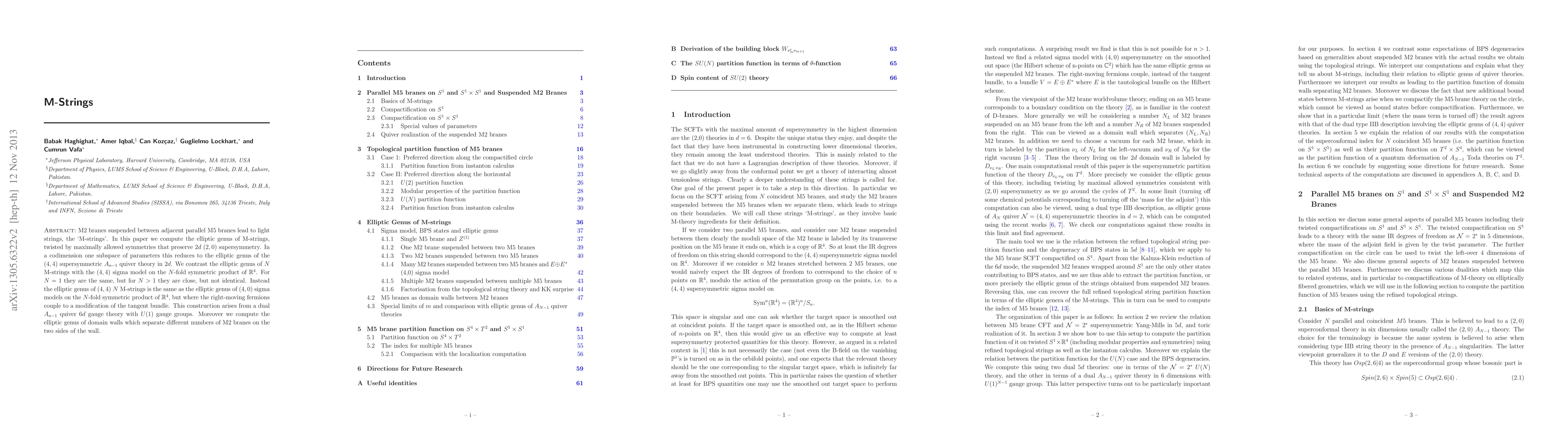 M2 branes suspended between adjacent parallel M5 branes lead to light strings, the `M-strings'. In this paper we compute the elliptic genus of M-strings, twisted by maximally allowed symmetries that preserve 2d (2,0) supersymmetry. In a codimension one subspace of parameters this reduces to the elliptic genus of the (4,4) supersymmetric A_{n-1} quiver theory in 2d. We contrast the elliptic genus of N M-strings with the (4,4) sigma model on the N-fold symmetric product of R^4. For N=1 they are the same, but for N>1 they are close, but not identical. Instead the elliptic genus of (4,4) N M-strings is the same as the elliptic genus of (4,0) sigma models on the N-fold symmetric product of R^4, but where the right-moving fermions couple to a modification of the tangent bundle. This construction arises from a dual A_{n-1} quiver 6d gauge theory with U(1) gauge groups. Moreover we compute the elliptic genus of domain walls which separate different numbers of M2 branes on the two sides of the wall.