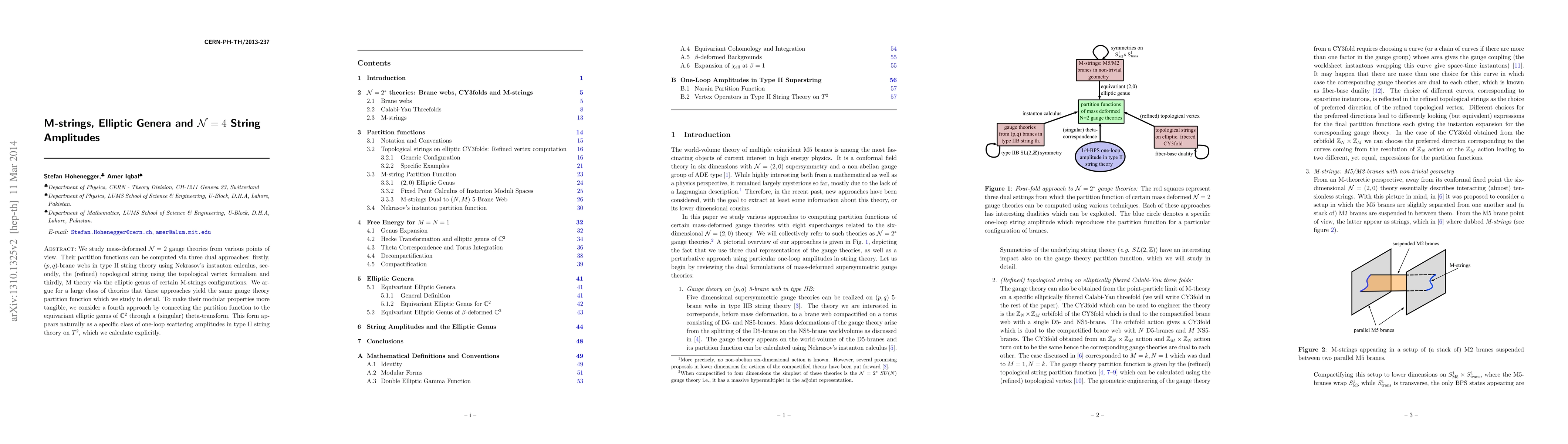 This research paper explores mass-deformed N=2 gauge theories, demonstrating that their partition functions can be computed through three dual approaches: (p,q)-brane webs, topological strings, and M-theory via elliptic genus. A fourth approach, linking the partition function to R^4's equivariant elliptic genus via a theta-transform, reveals modular properties. The study calculates explicit one-loop scattering amplitudes in type II string theory on T^2.