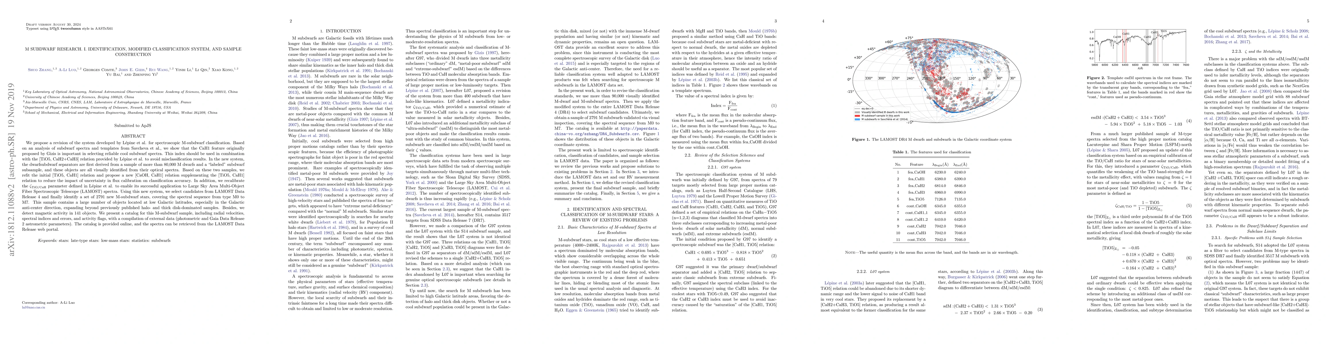 A new classification system for M subdwarfs is proposed, incorporating a revised [CaOH, CaH1] relation to improve accuracy, and identifying 2791 new stars in the spectral sequence from M0 to M7 with magnetic activity detected in 141 objects.