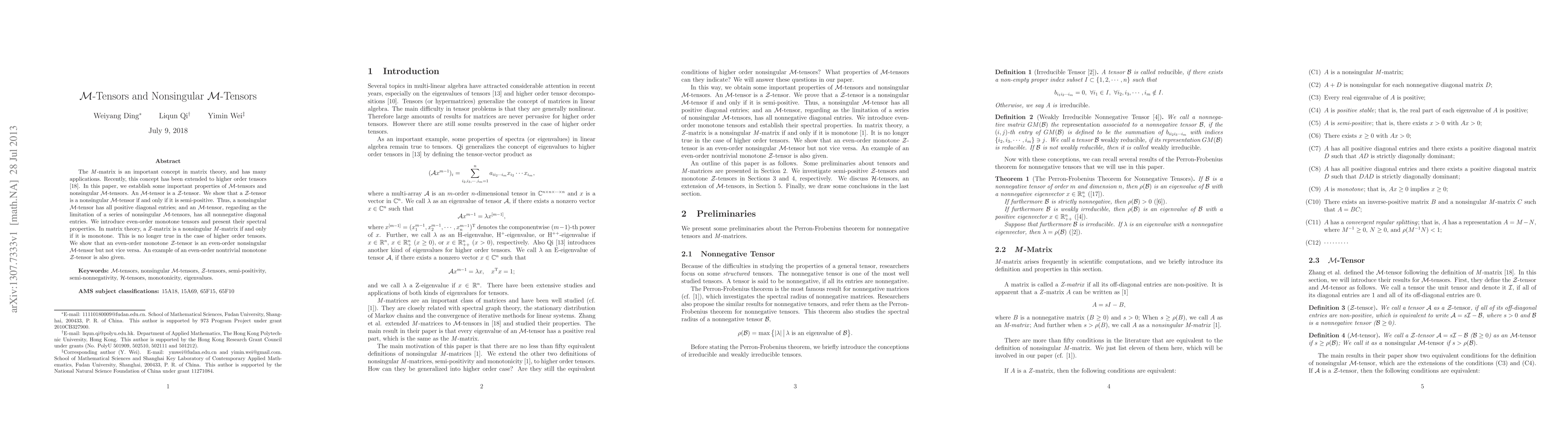 This paper explores the properties of M-tensors and nonsingular M-tensors, extending the concept of M-matrices to higher-order tensors. It establishes that a Z-tensor is a nonsingular M-tensor if and only if it is semi-positive, and introduces even-order monotone tensors, highlighting differences in spectral properties compared to matrices.