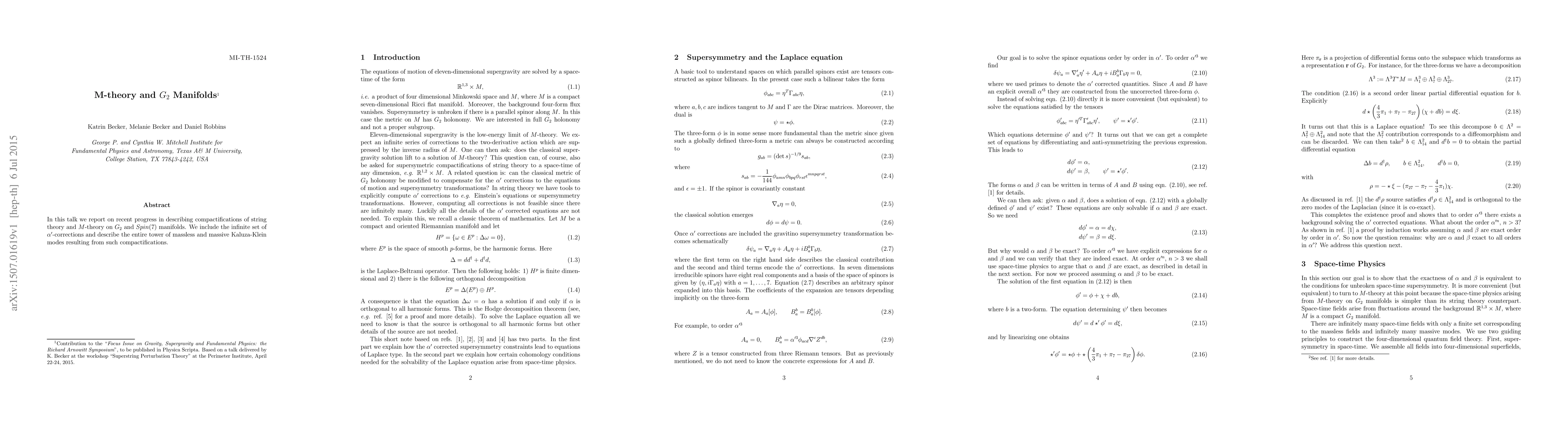 This research discusses advancements in understanding compactifications of string and M-theory on G_2 and Spin(7) manifolds, detailing an infinite set of α'-corrections and the resulting spectrum of massless and massive Kaluza-Klein modes.