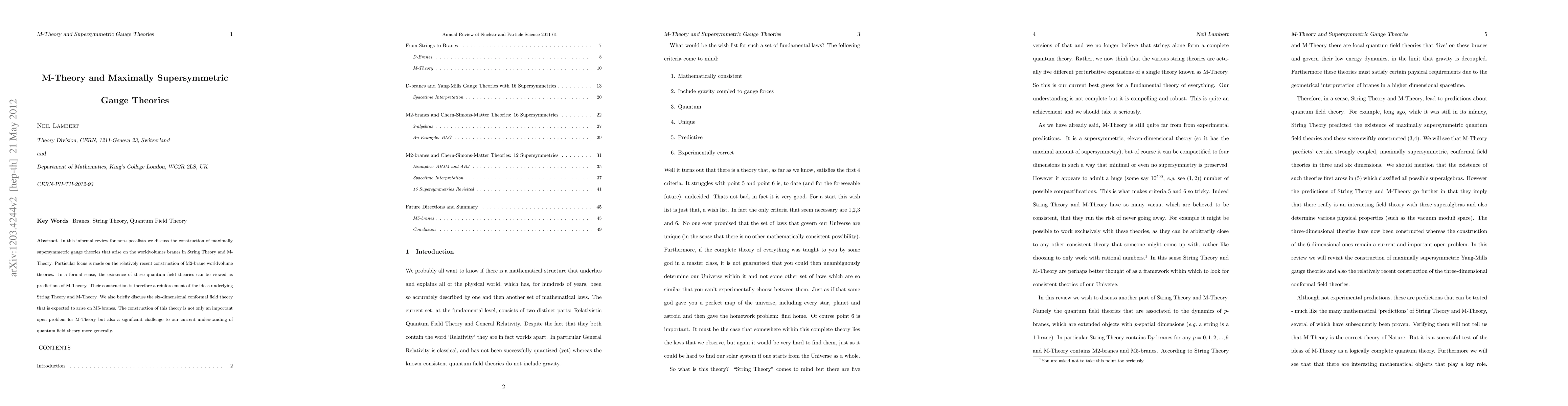 This paper reviews the construction of maximally supersymmetric gauge theories emerging from branes in String Theory and M-Theory, particularly focusing on M2-branes. It underscores these theories as predictions of M-Theory, reinforcing String Theory's foundational ideas and briefly touches on the significant challenge of constructing a six-dimensional conformal field theory for M5-branes.